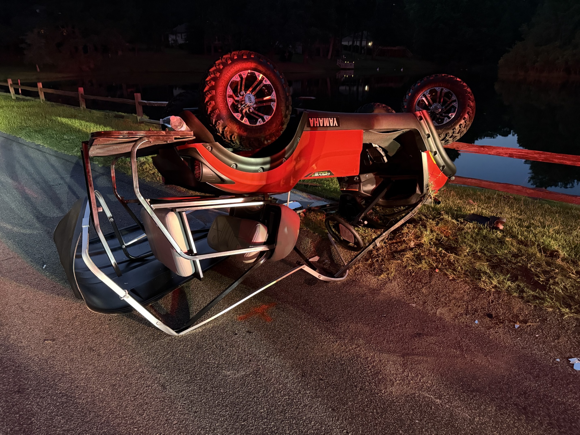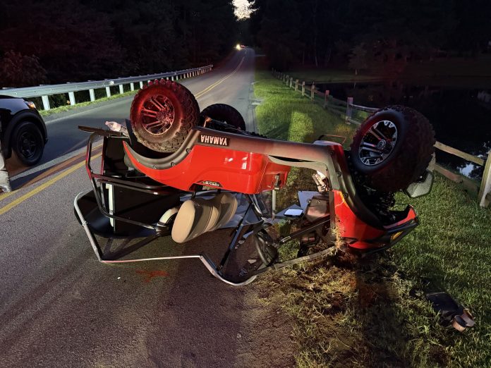 The crash happened just before 8 p.m. Troopers investigating the incident say the golf cart was traveling downhill when the driver lost control, causing the cart to overturn and land upside down. Speed was likely a factor, according to Troopers.