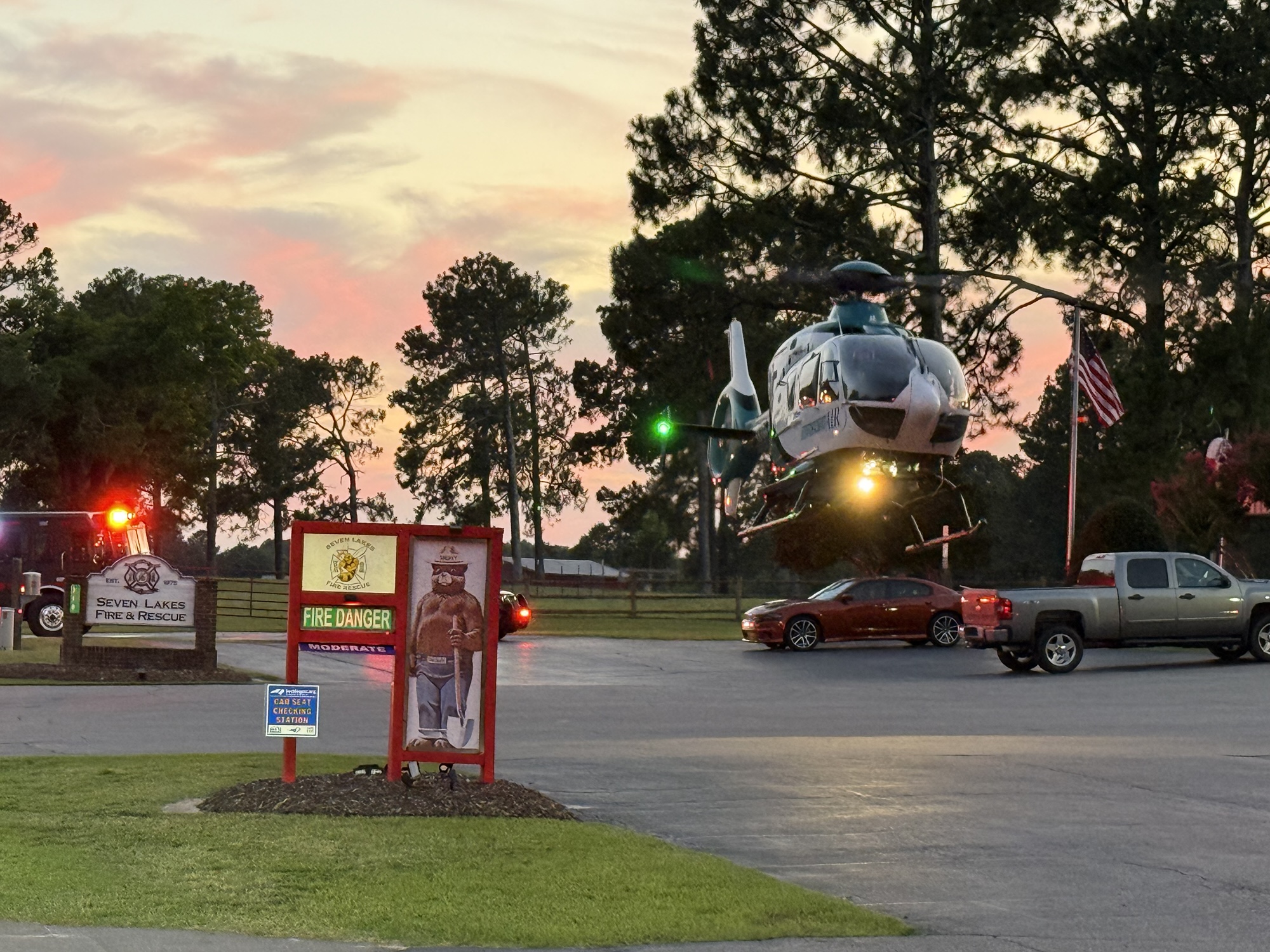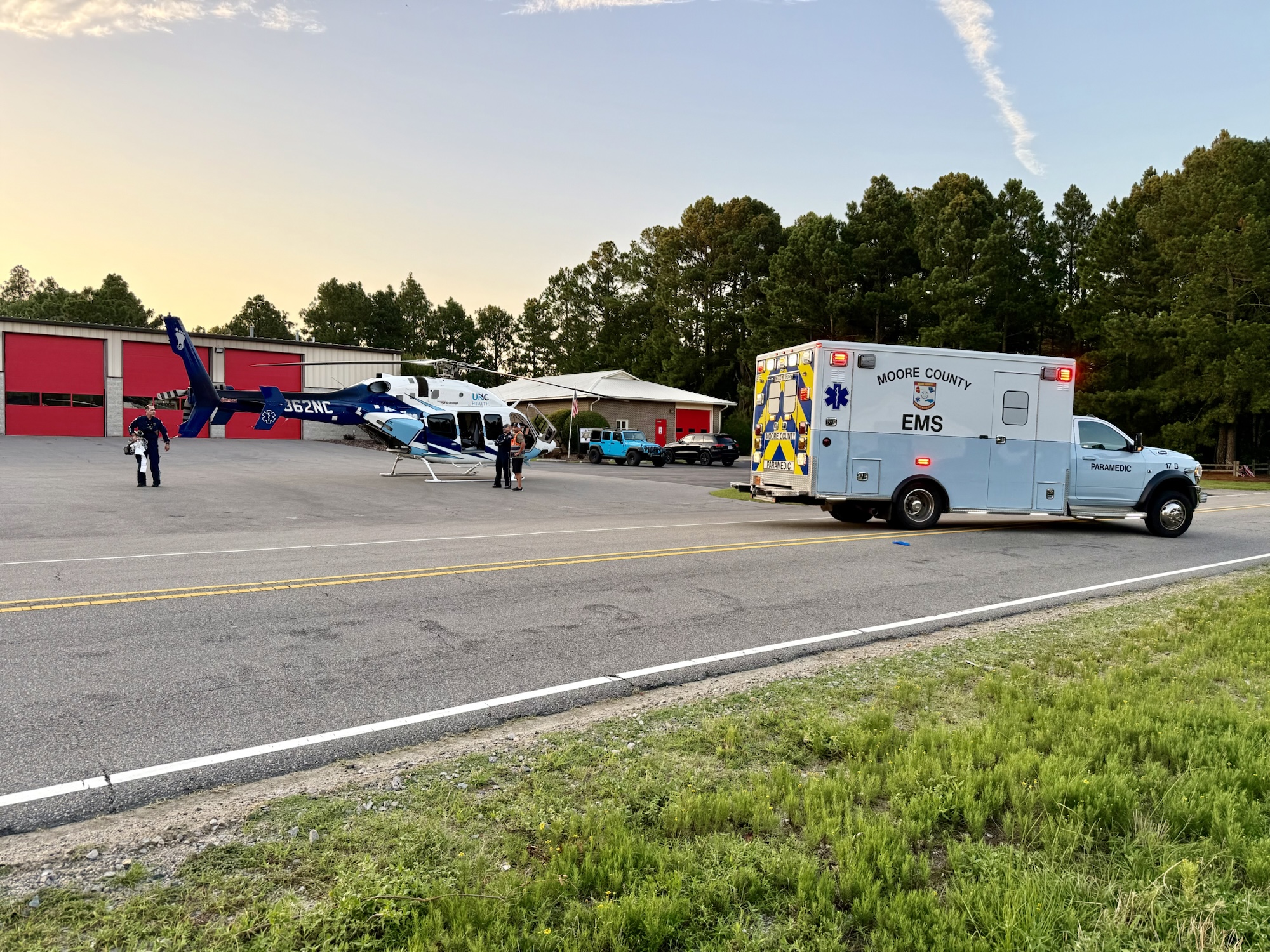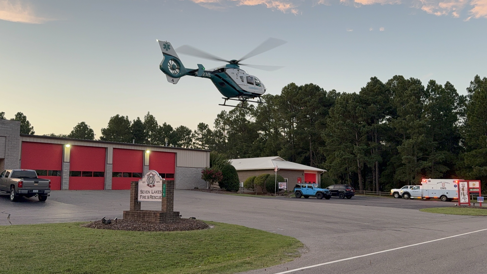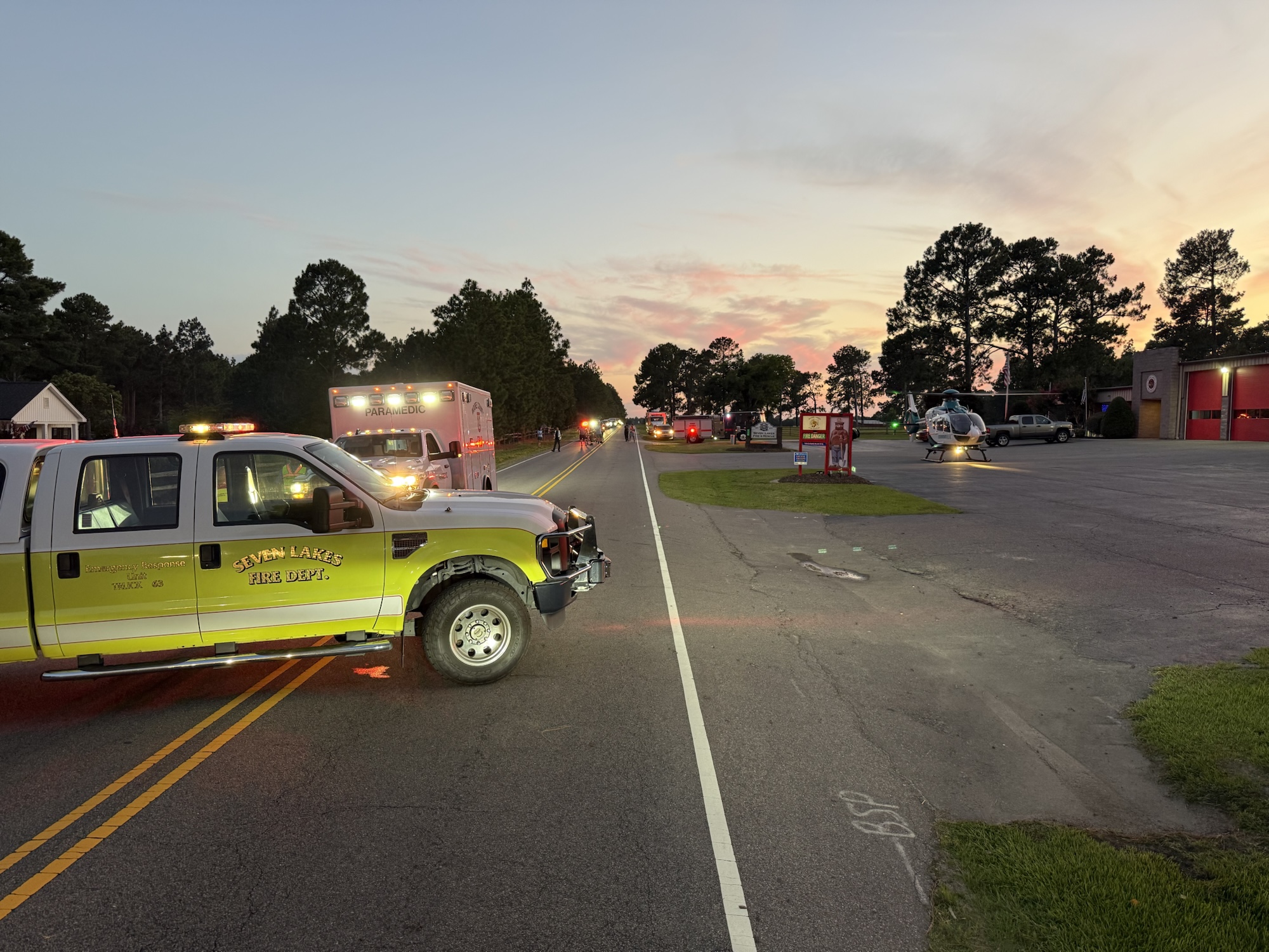As a result, Seven Lakes Drive was temporarily closed near the fire station to allow two medical helicopters to land. Longleaf Drive was also shut down for a period while emergency crews worked to free the victims and clear the scene.