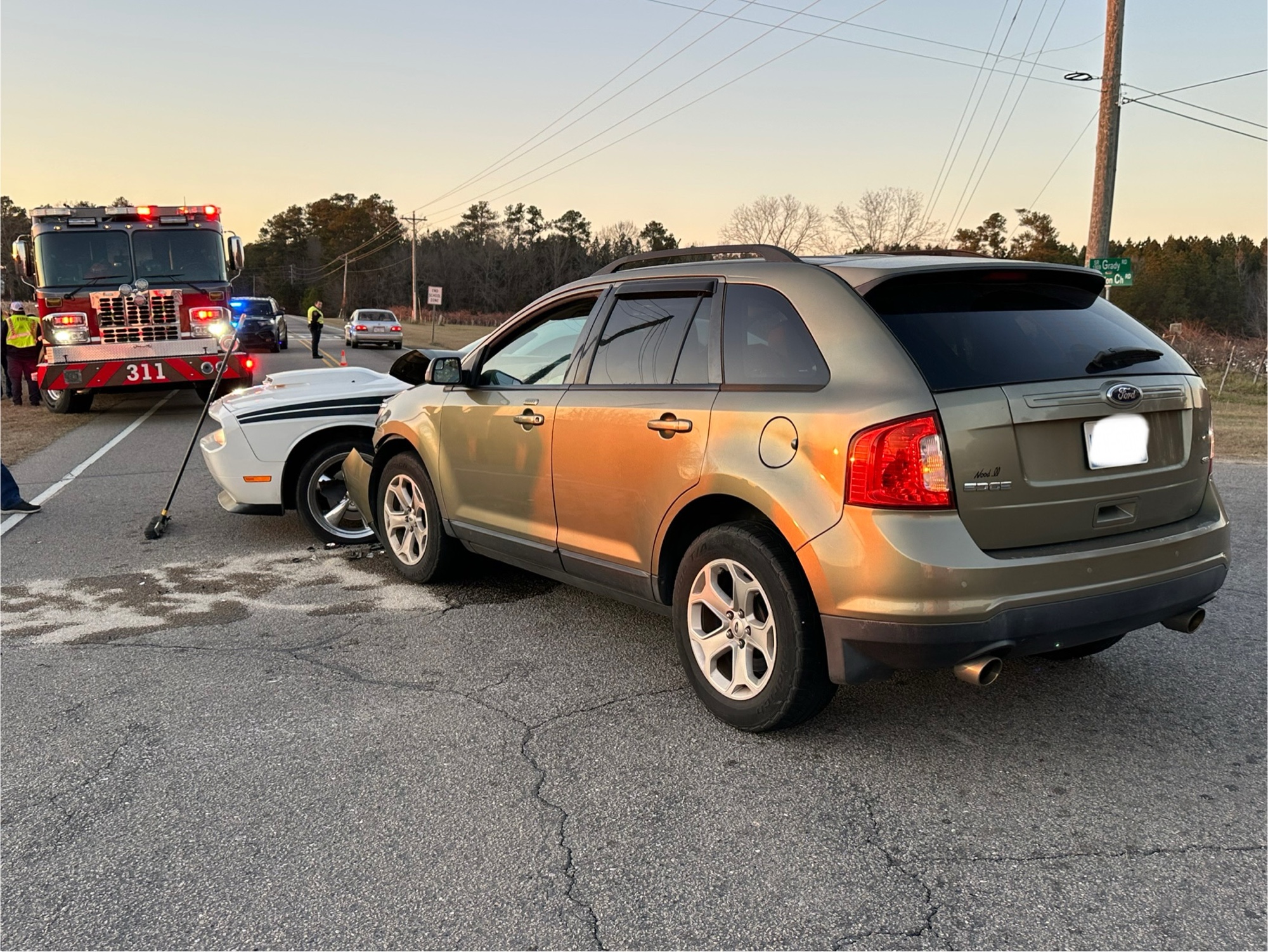 Troopers says a Ford Edge was traveling on Union Church Road towards Carthage when a Dodge Challenger attempted to turn left from Grady Road. The Edge collided with the driver’s side of the Challenger.
