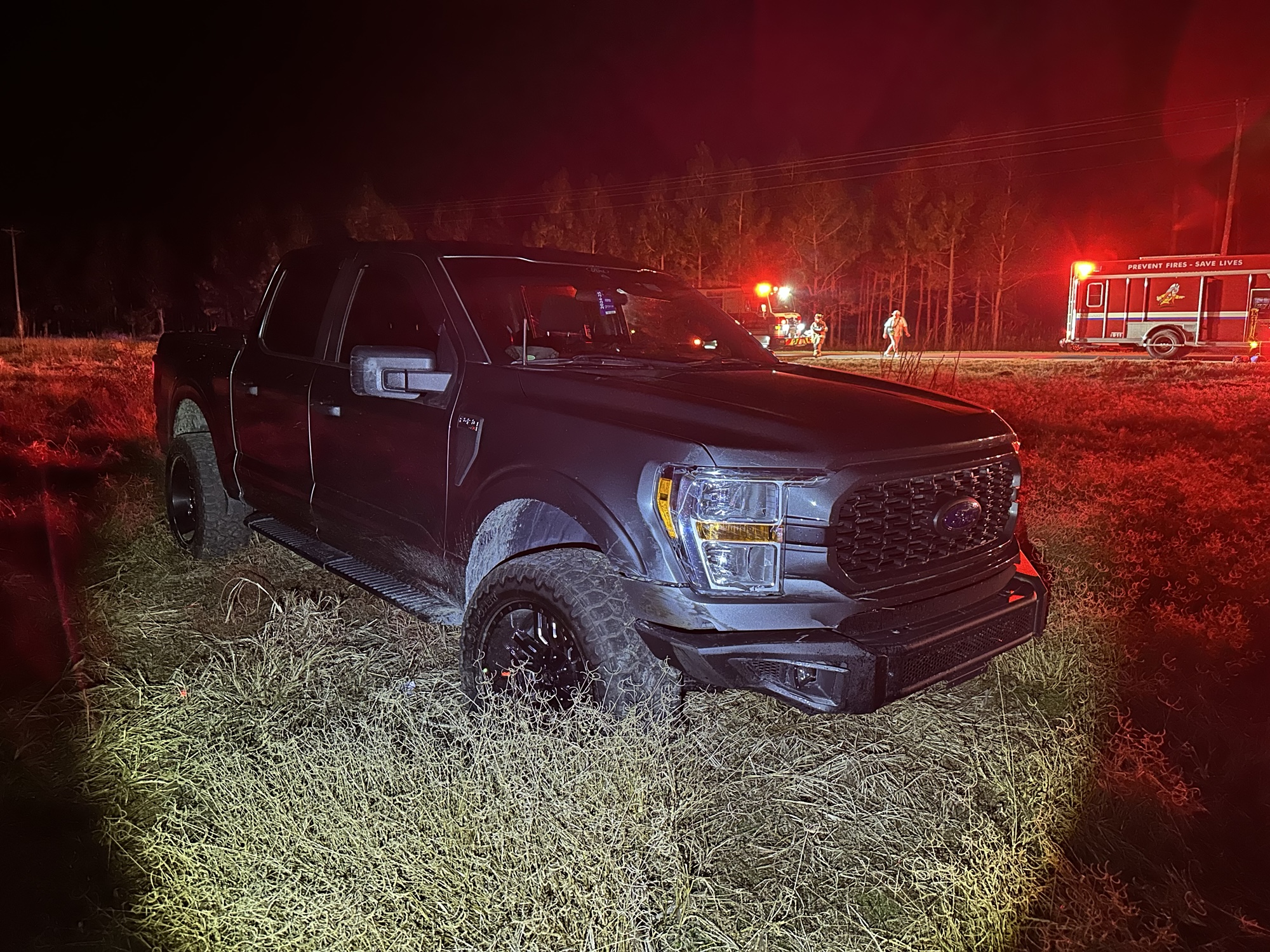 Around 7:20 p.m., first responders were dispatched to the area of Highway 24-27 and Grady Road. The first arriving unit found two pick-up trucks off in a field, one of them over 350 feet deep into the field.