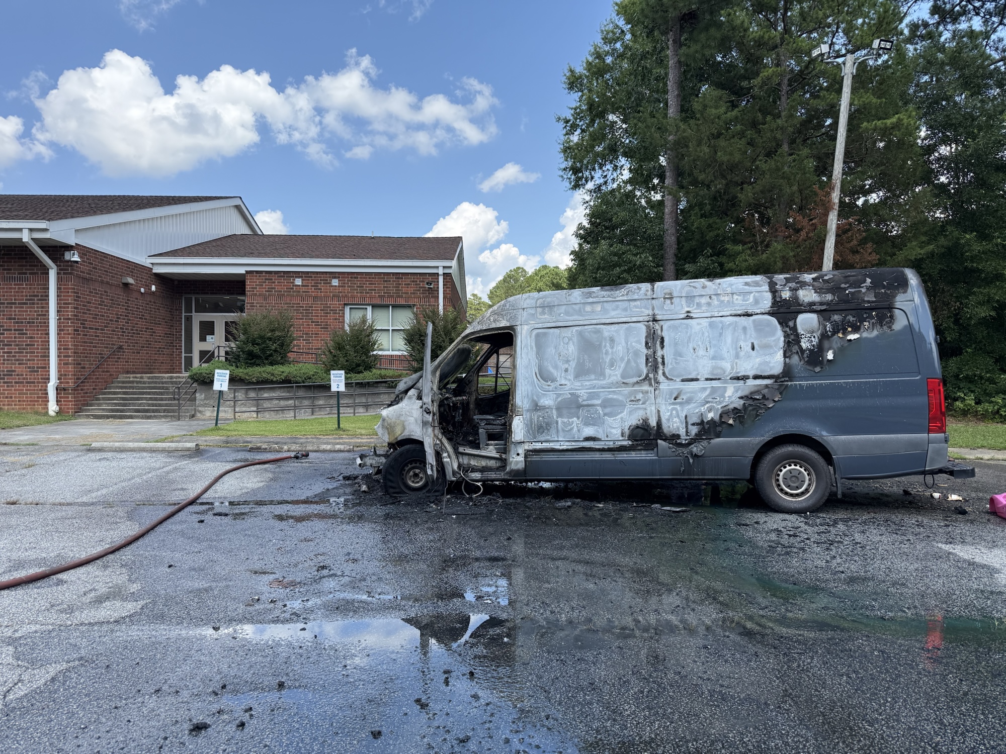 The fire broke out just before 2:30 p.m. along Gardenia Road. When the first fire crew arrived on scene, they reported a fully involved Sprinter-style delivery van with flames coming from the cabin.