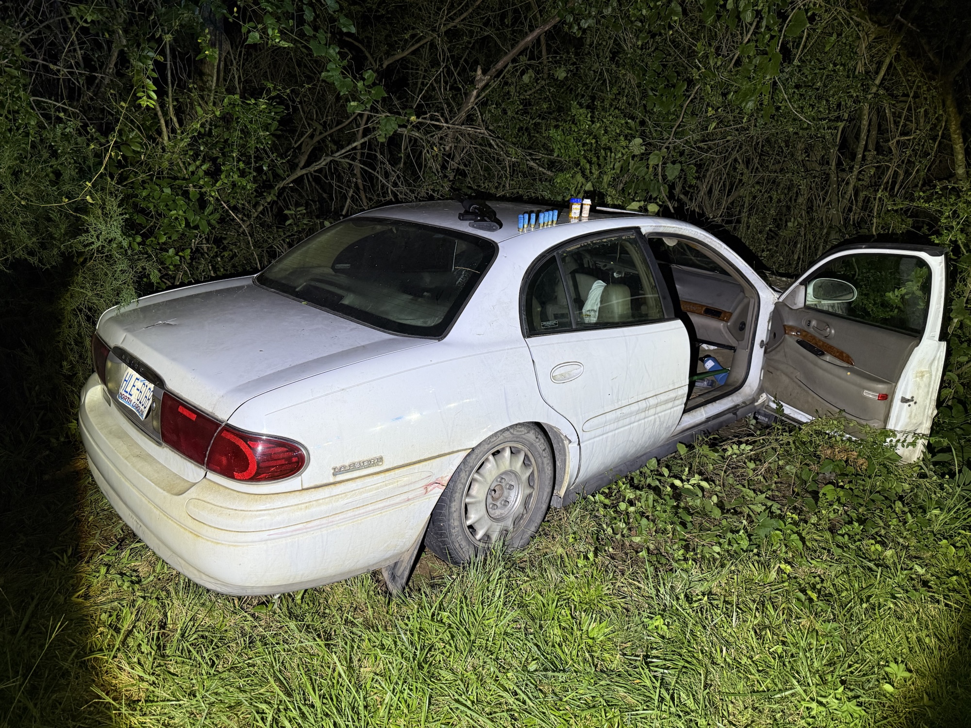 Just after 11:45 p.m. Friday, a passer-by reported the vehicle had run off Gardenia Road and crashed into a wooded area. When first responders arrived, they found the car abandoned, with no driver or passengers in sight.