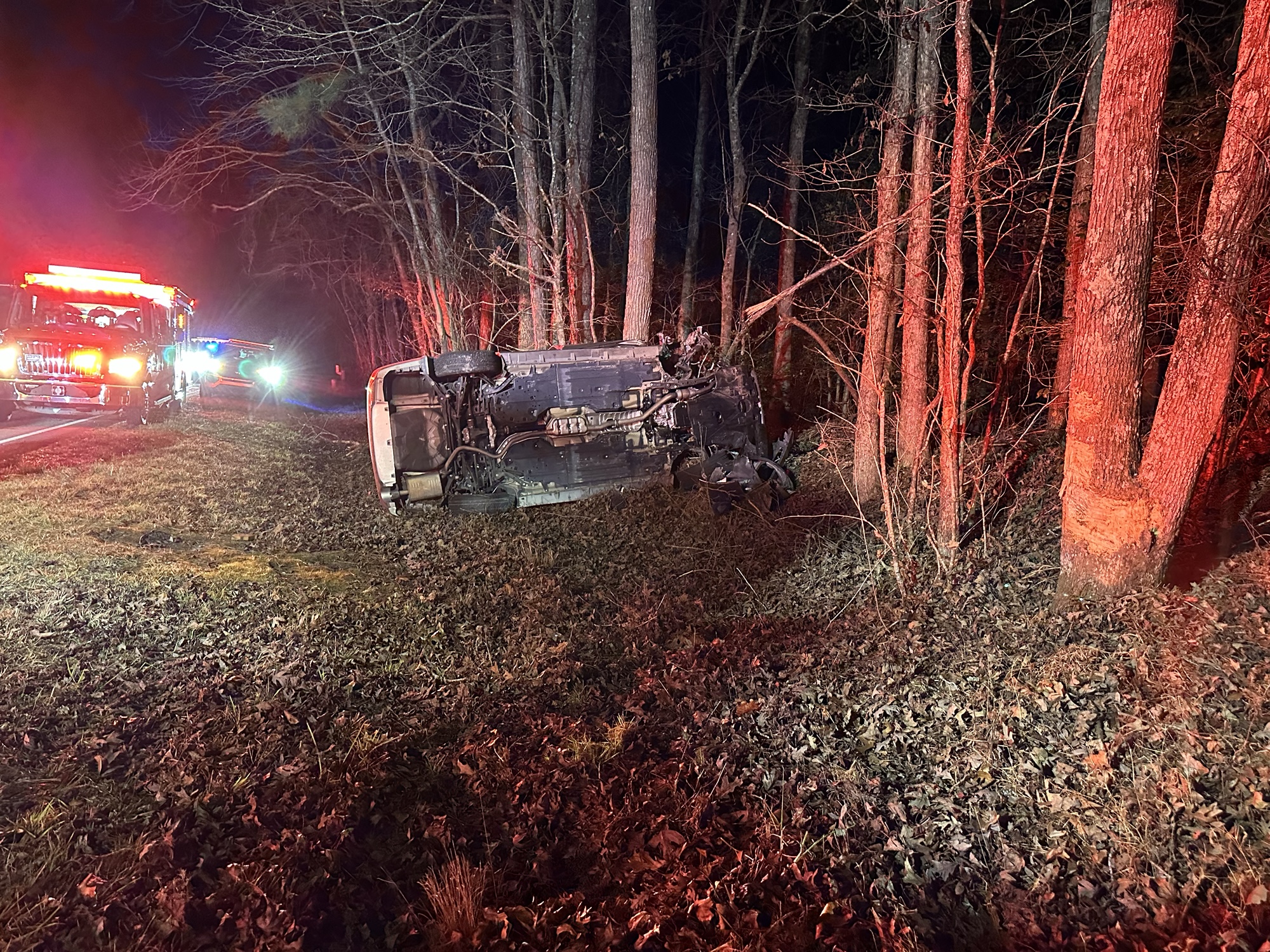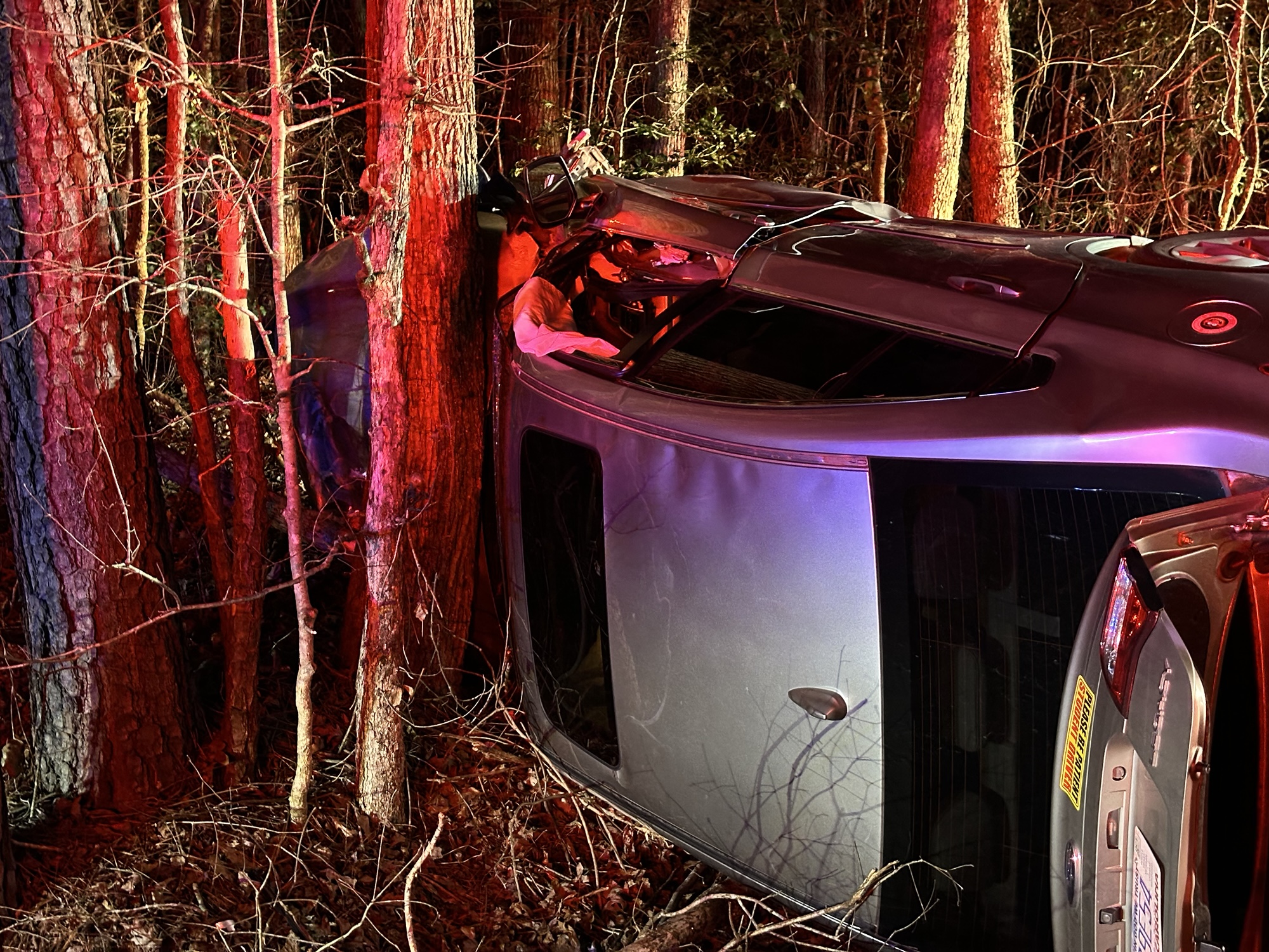 Authorities say the woman lost control of the vehicle, crossing the center line. She then over corrected, went off the right side of the road and hit a tree. The impact caused the vehicle to flip onto its driver’s side, before hitting another tree.
