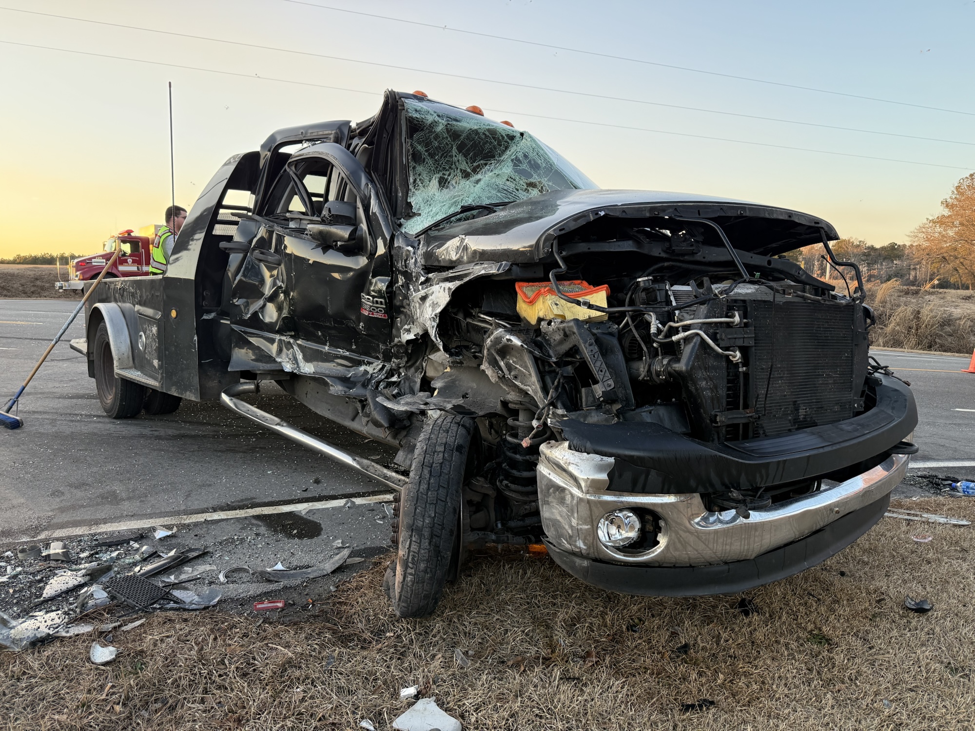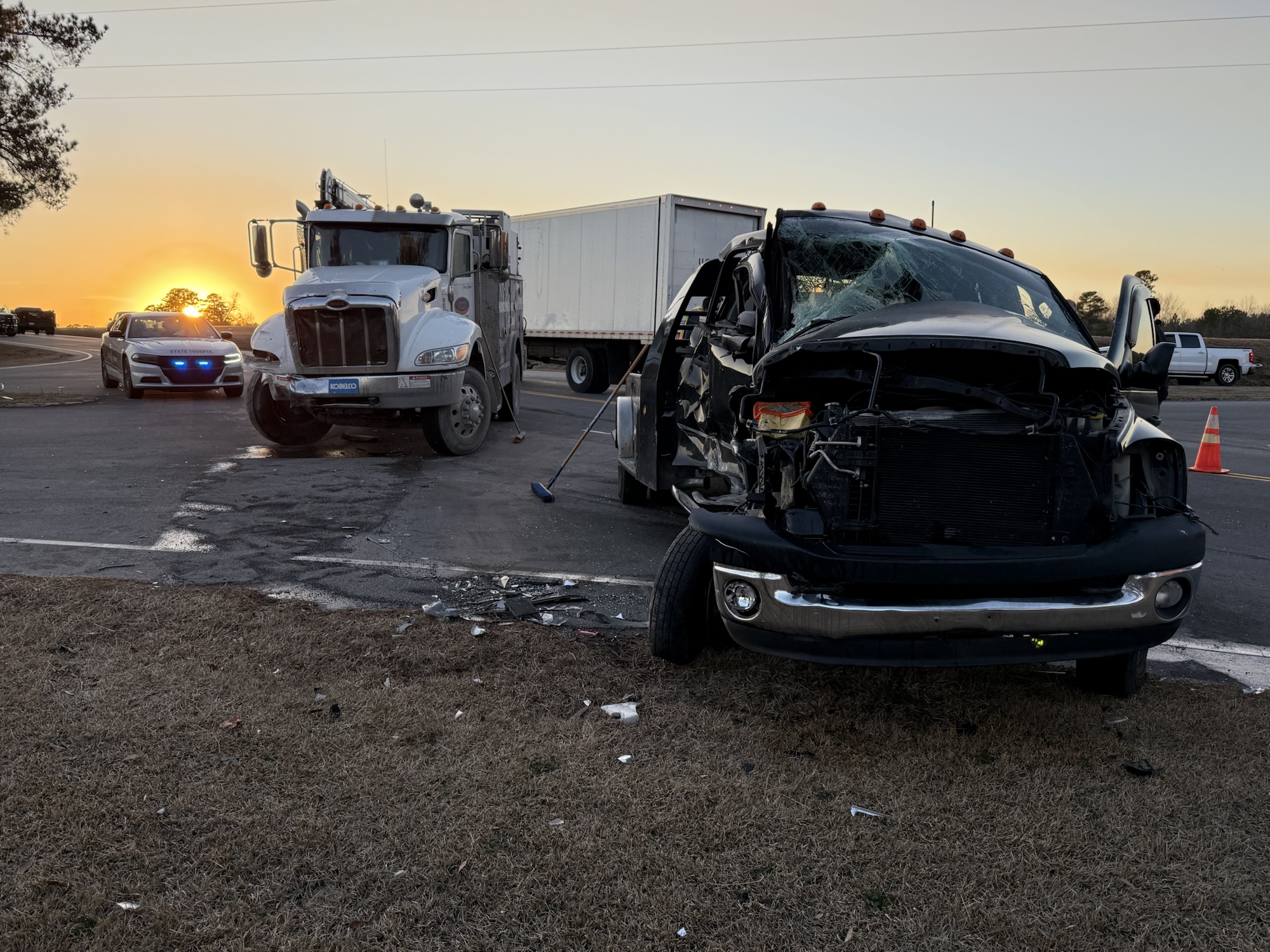 According to troopers, the male driver was attempting to turn left from the highway onto Dairymple Road when a Peterbilt heavy-duty utility truck crashed into the passenger side of the Dodge.