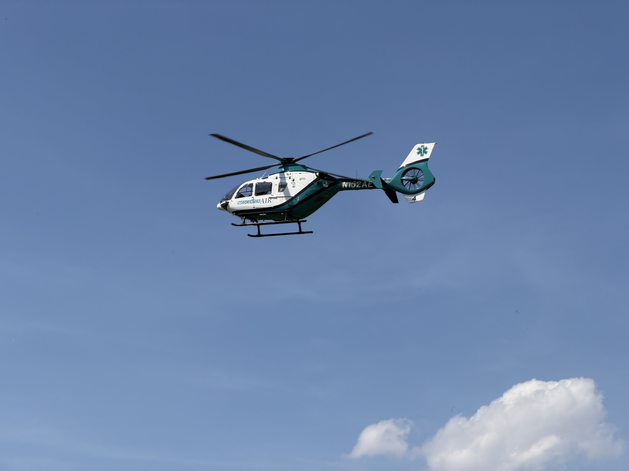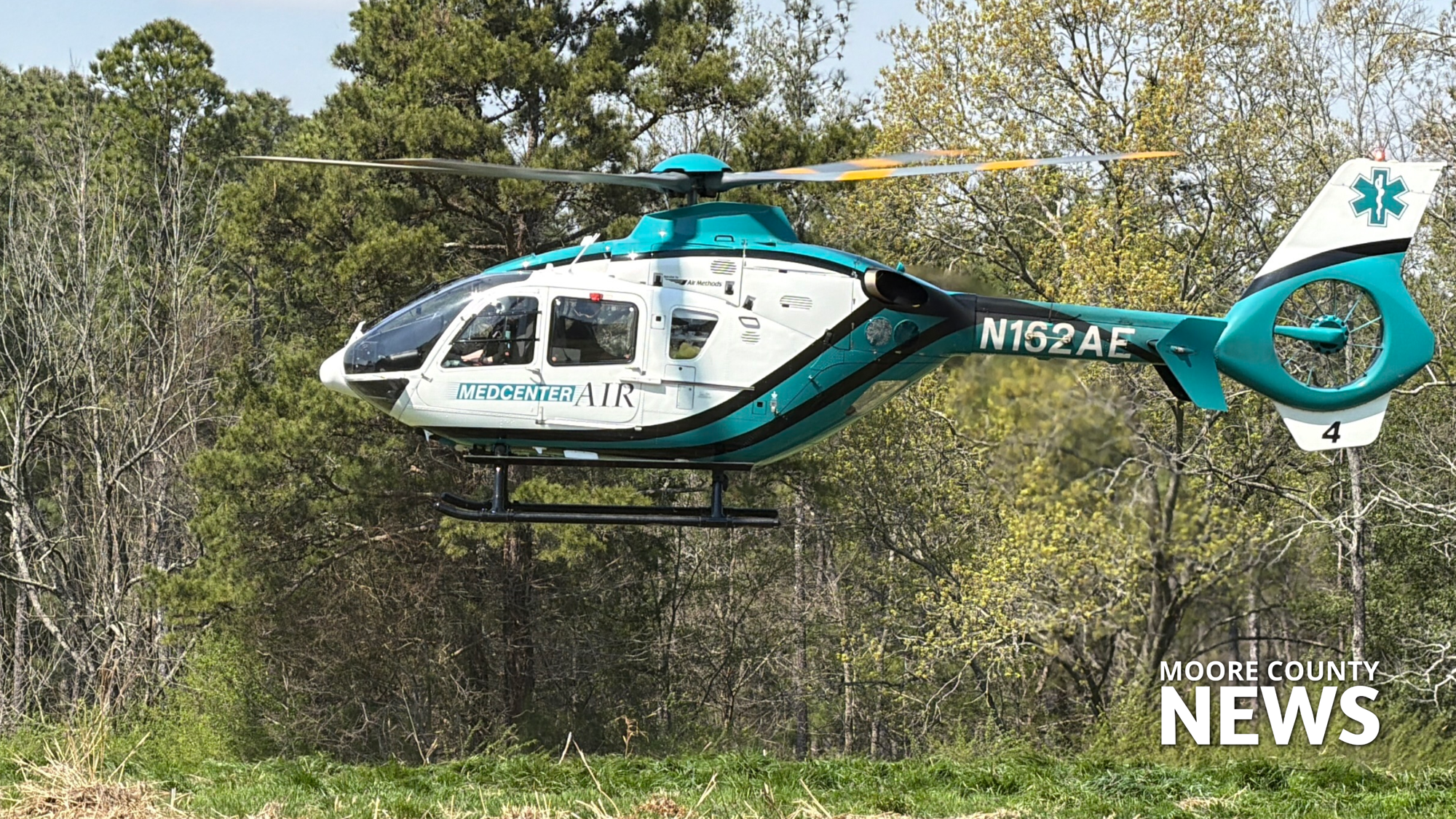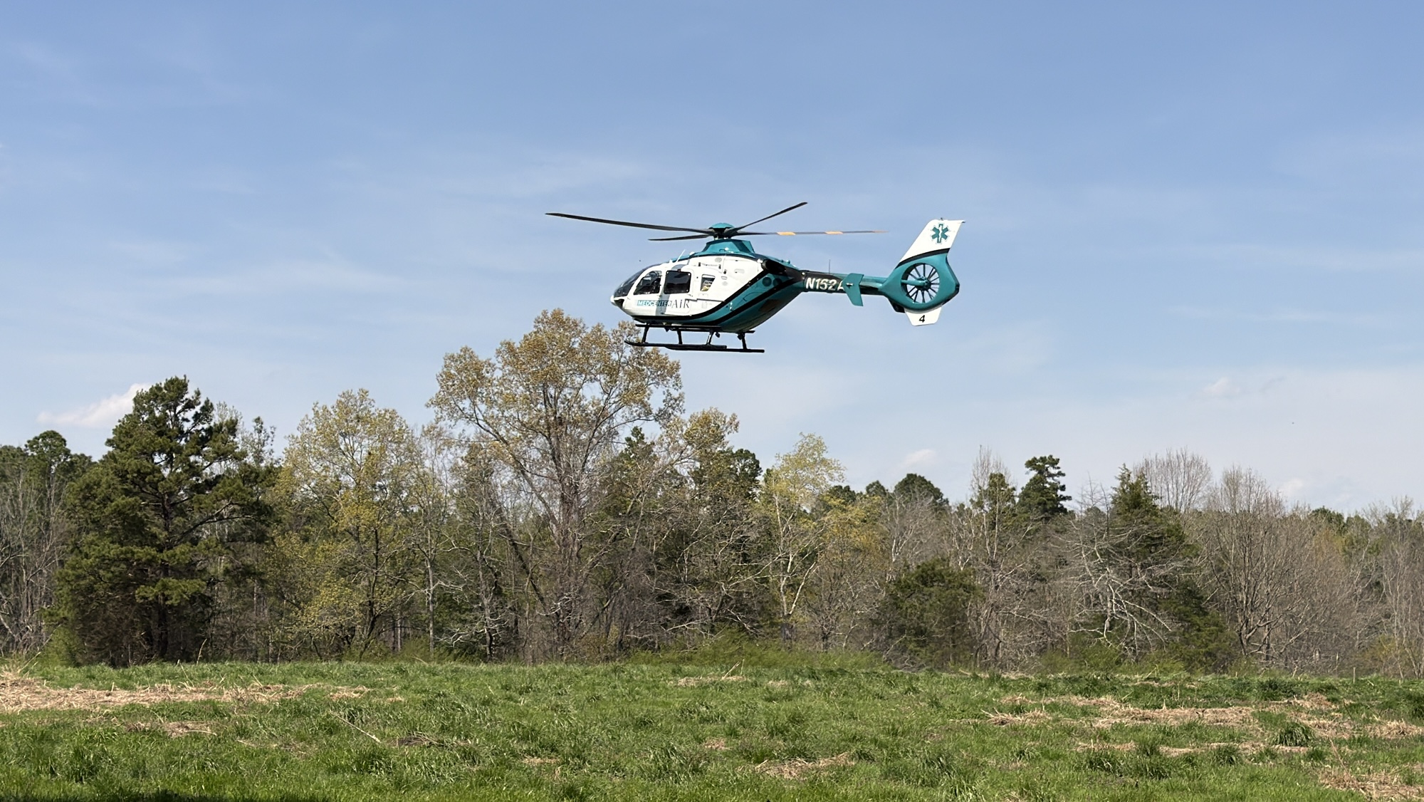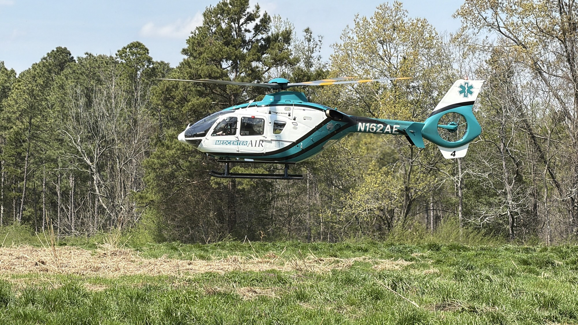 Officials set up a landing zone in a nearby field off Hinson Road, where a medical helicopter arrived to transport the injured person.