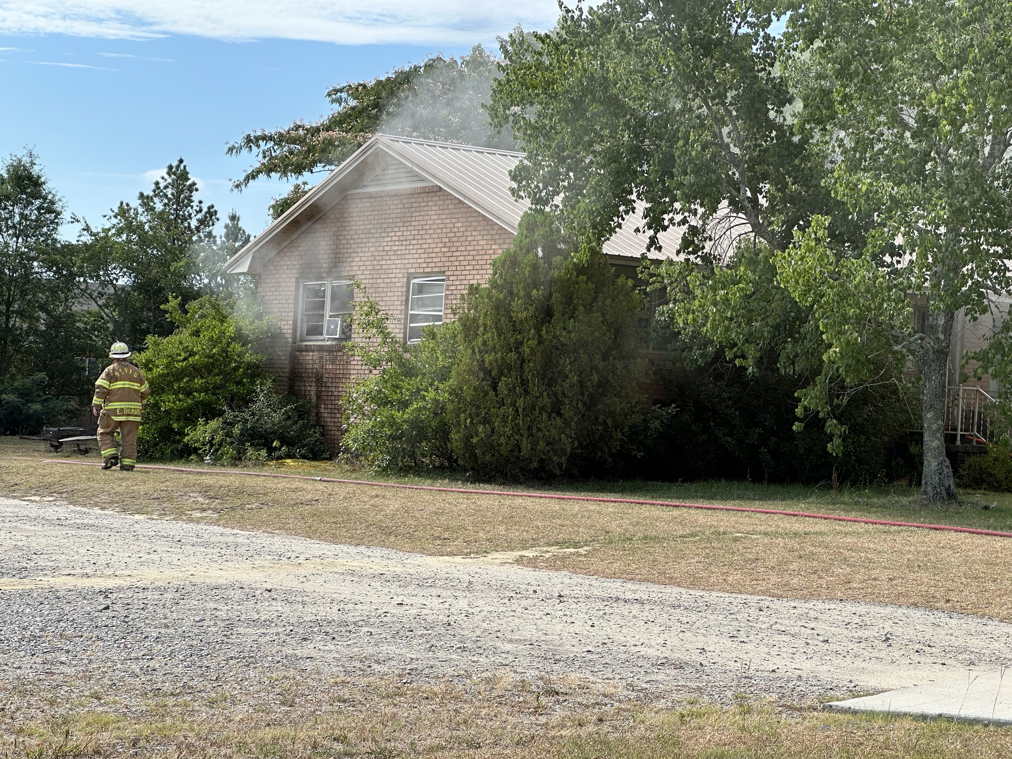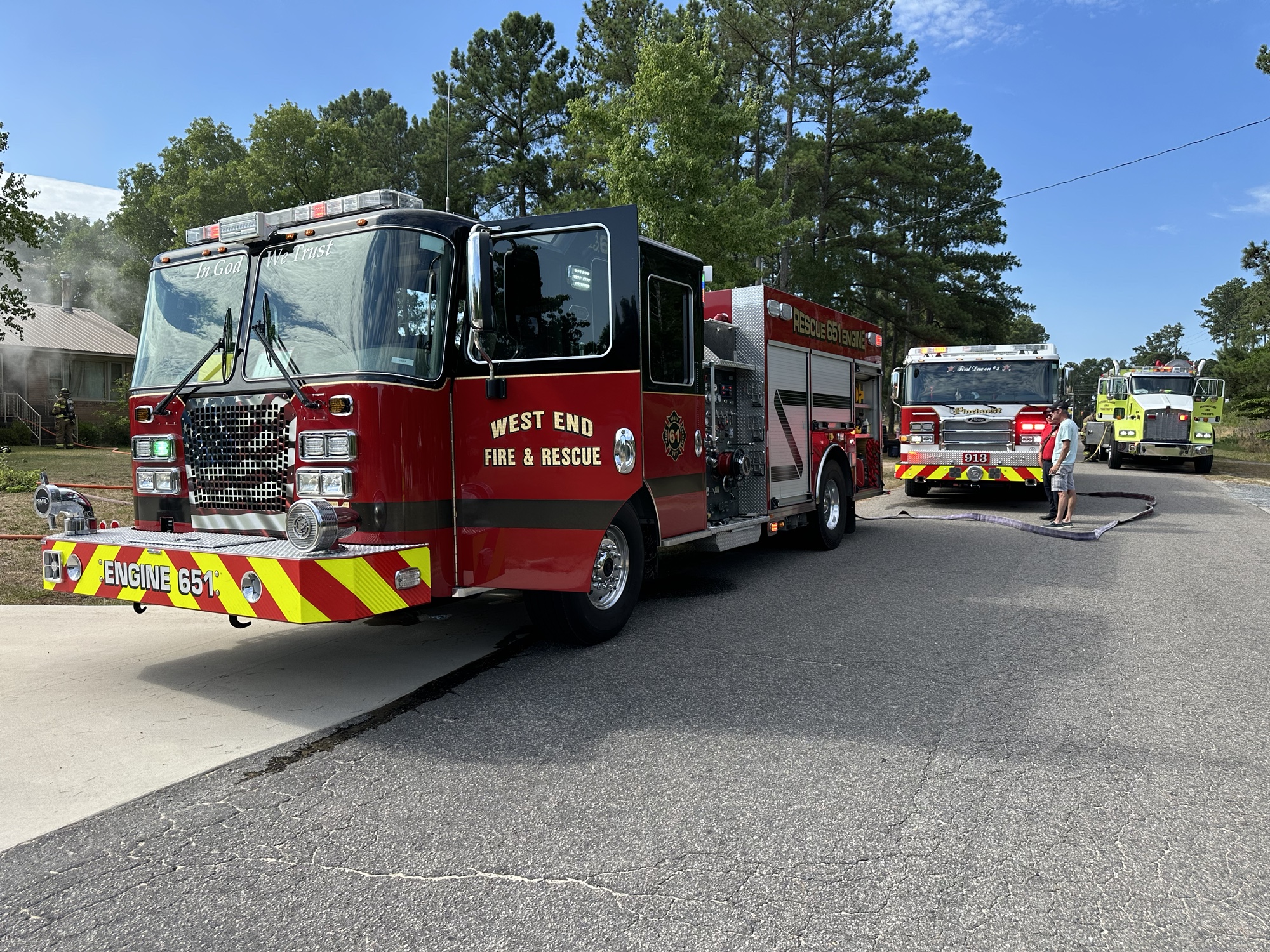 Firefighters from West End and other nearby areas were dispatched to the home next to West Pine Middle School on Archie Road just before 9:30 a.m. Heavy smoke could be seen coming from the house, and flames were seen in a bedroom.