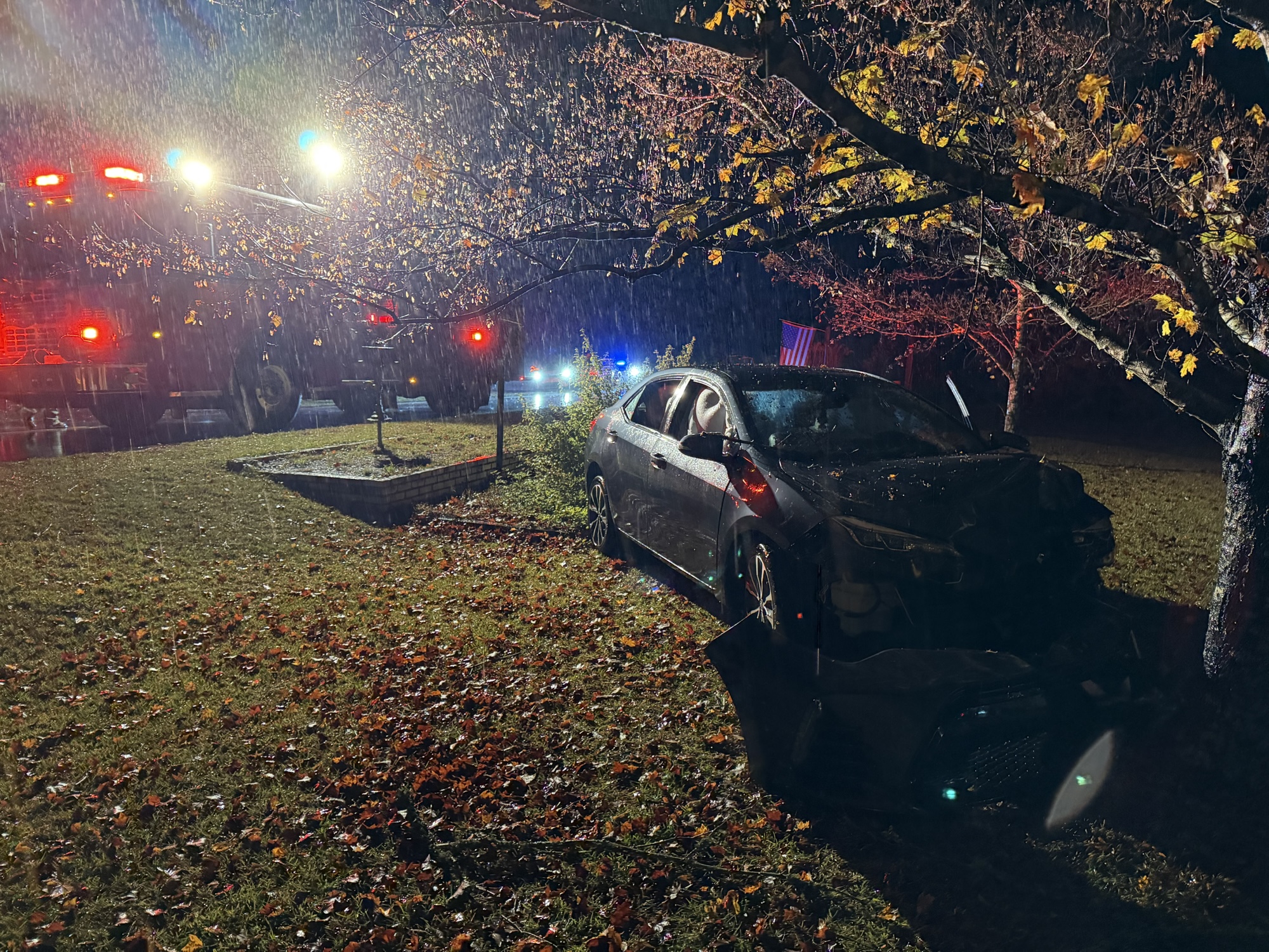 Emergency crews were called to the scene around 9 p.m. after a Toyota Corolla ran off the road and hit a tree. When firefighters arrived, they found the car but no driver. Officials said the person behind the wheel had fled on foot heading toward Carthage.