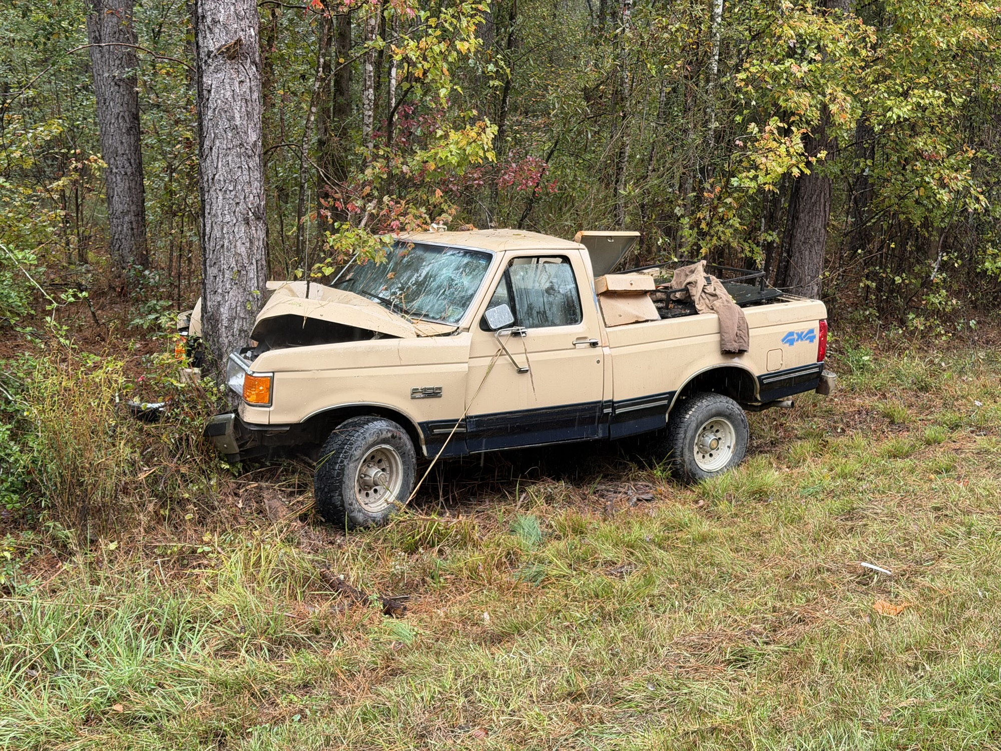 The crash happened just after 2 p.m. when an older model Ford F-150 ran off the right side of the road and hit a tree head-on.