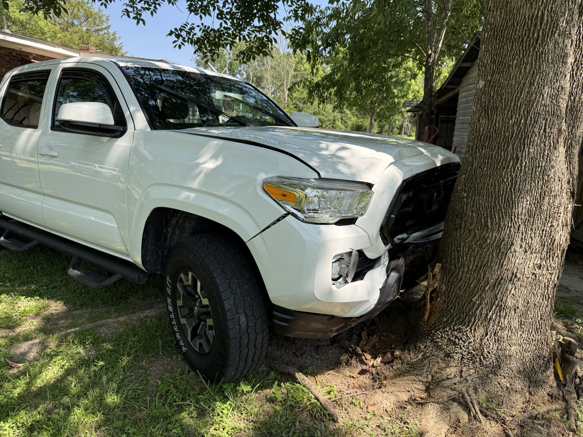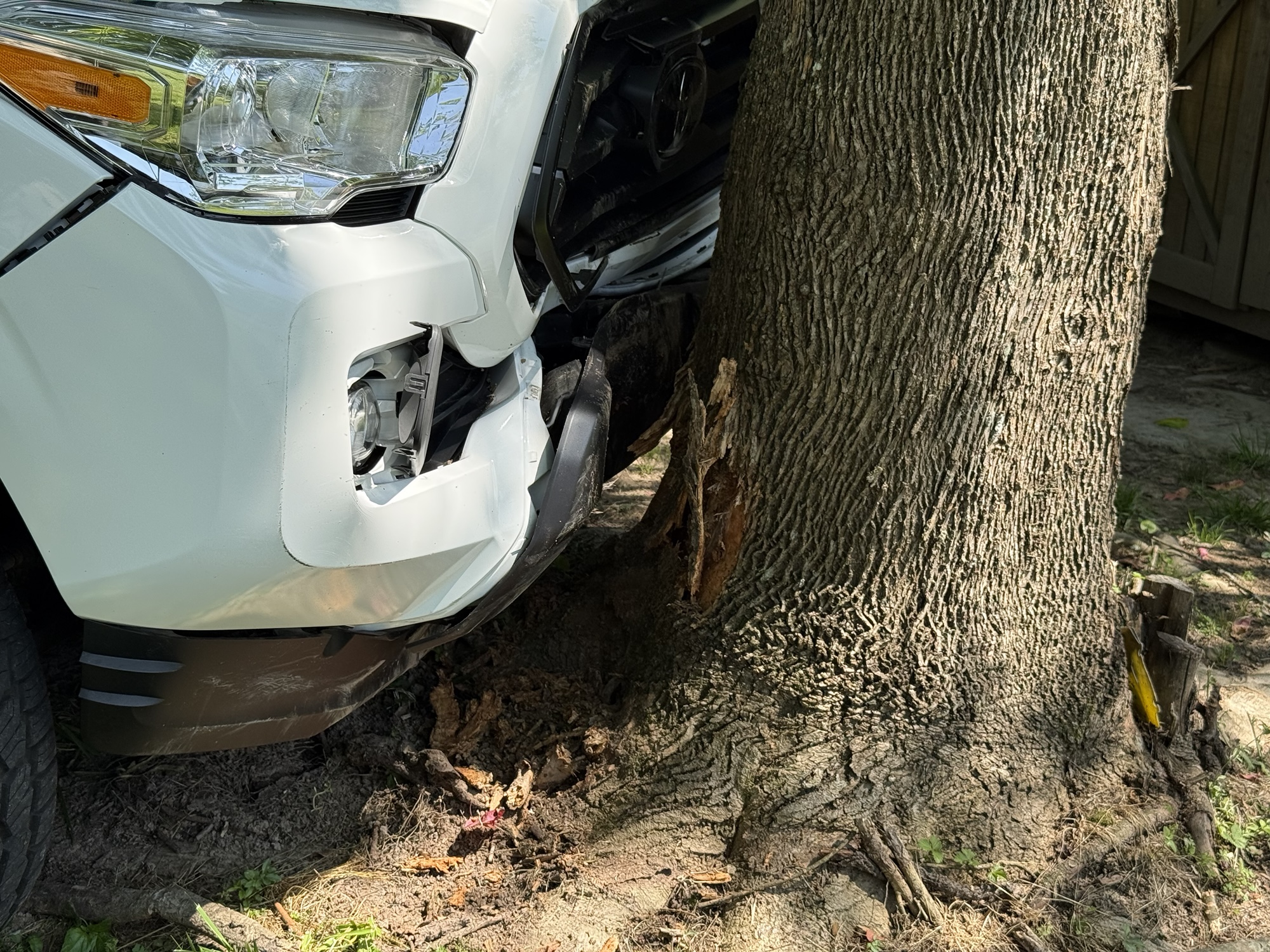 According to authorities, the driver of a Toyota Tacoma accidentally pressed the gas pedal instead of the brake while in the home’s carport. The vehicle jumped a small brick wall and struck a nearby tree.