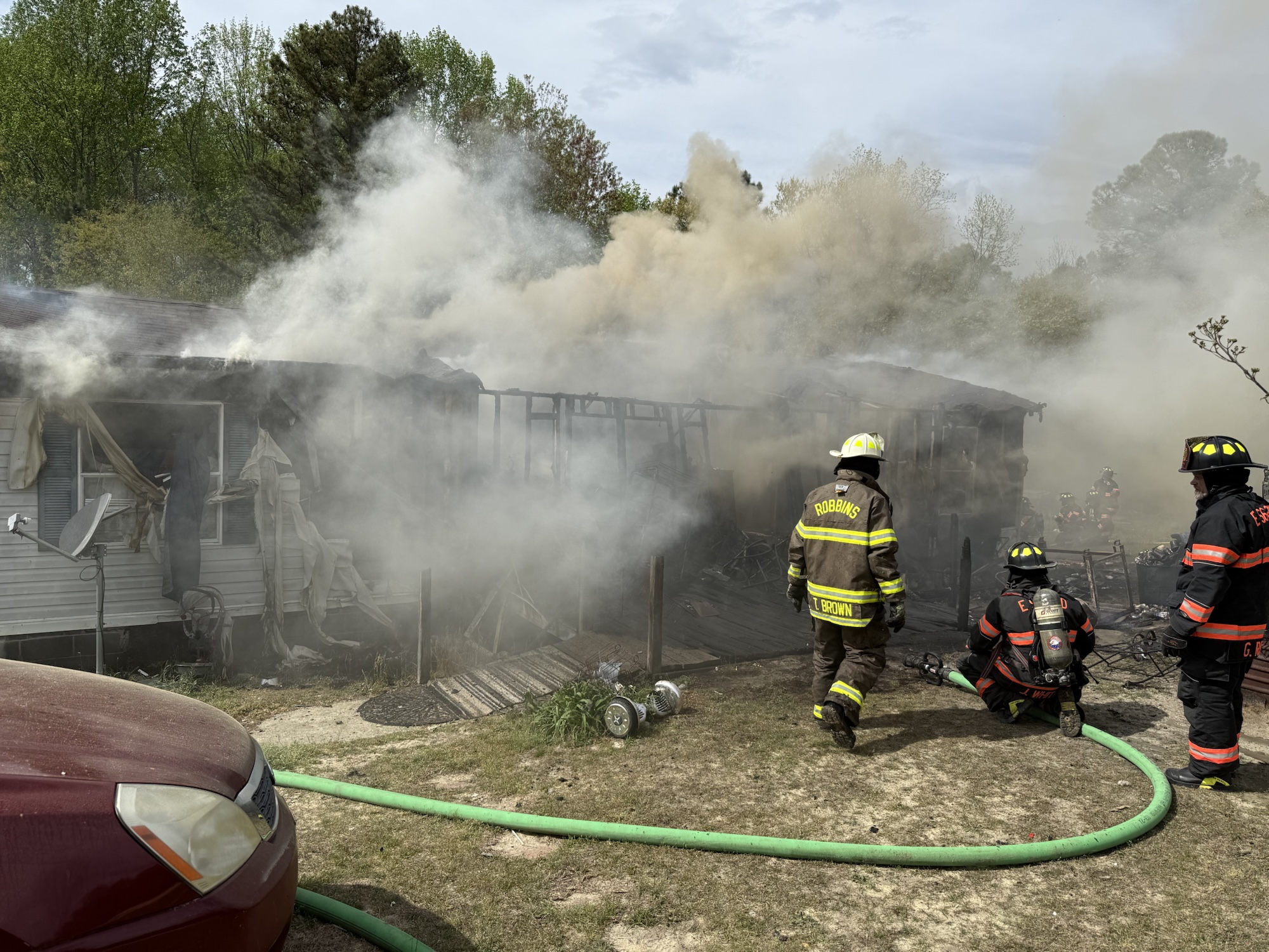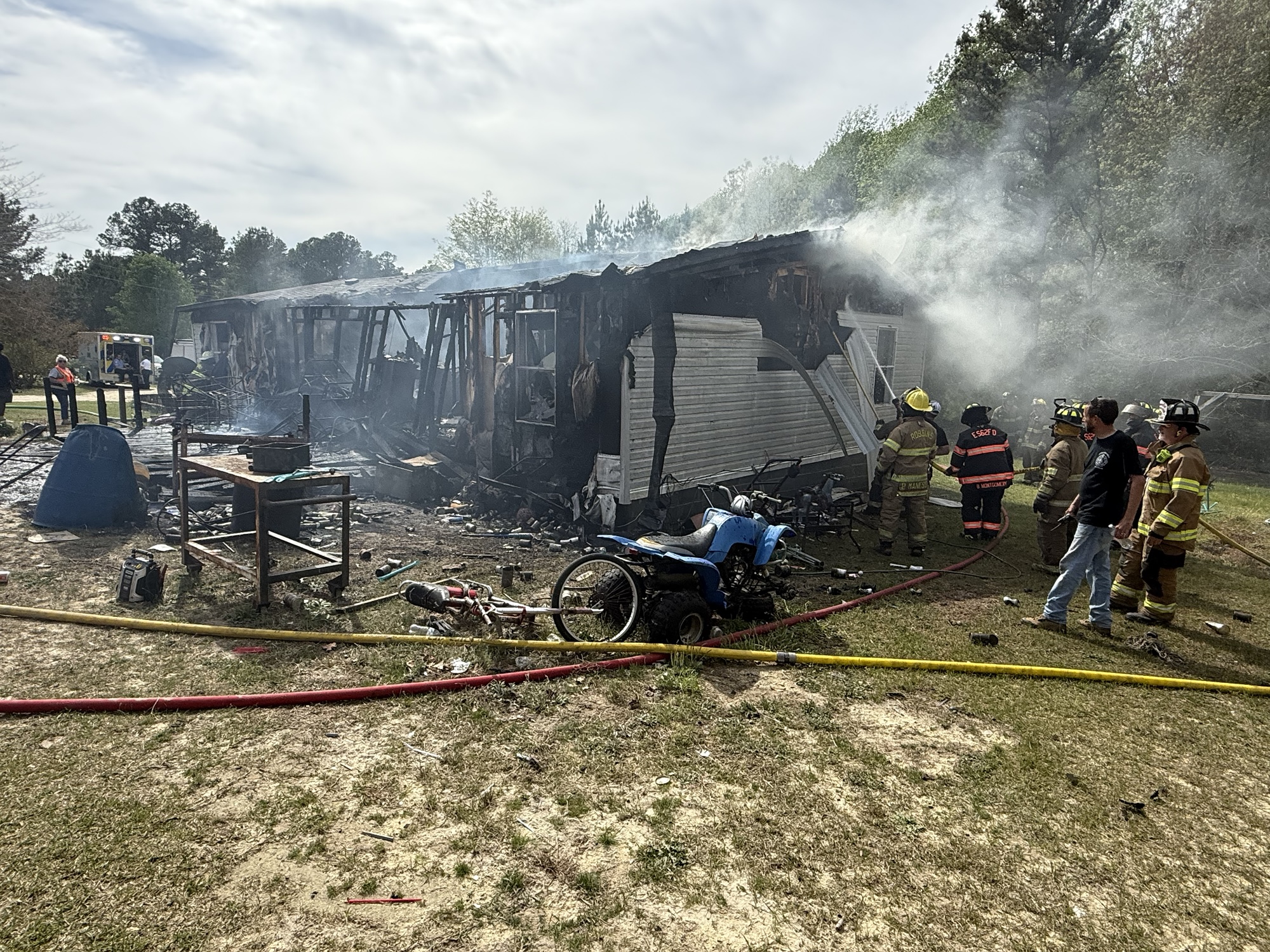 A Sunday afternoon fire destroyed a home on Elmer Place in Eagle Springs, displacing four residents and killing a family dog.