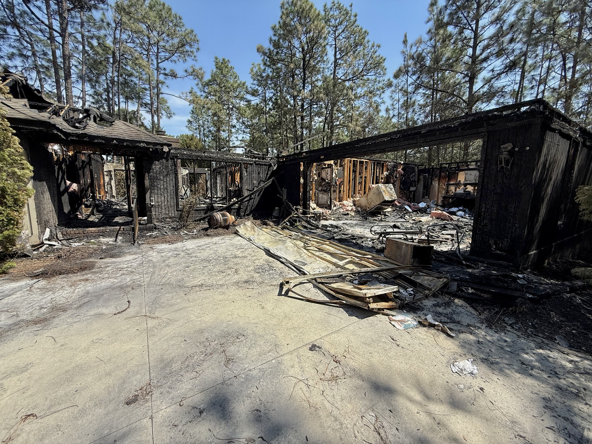 During the response, much of the roof collapsed, and drone footage taken by Moore County News shows only a small portion of the structure was spared from the worst of the damage. The majority of the home was gutted by the fire.