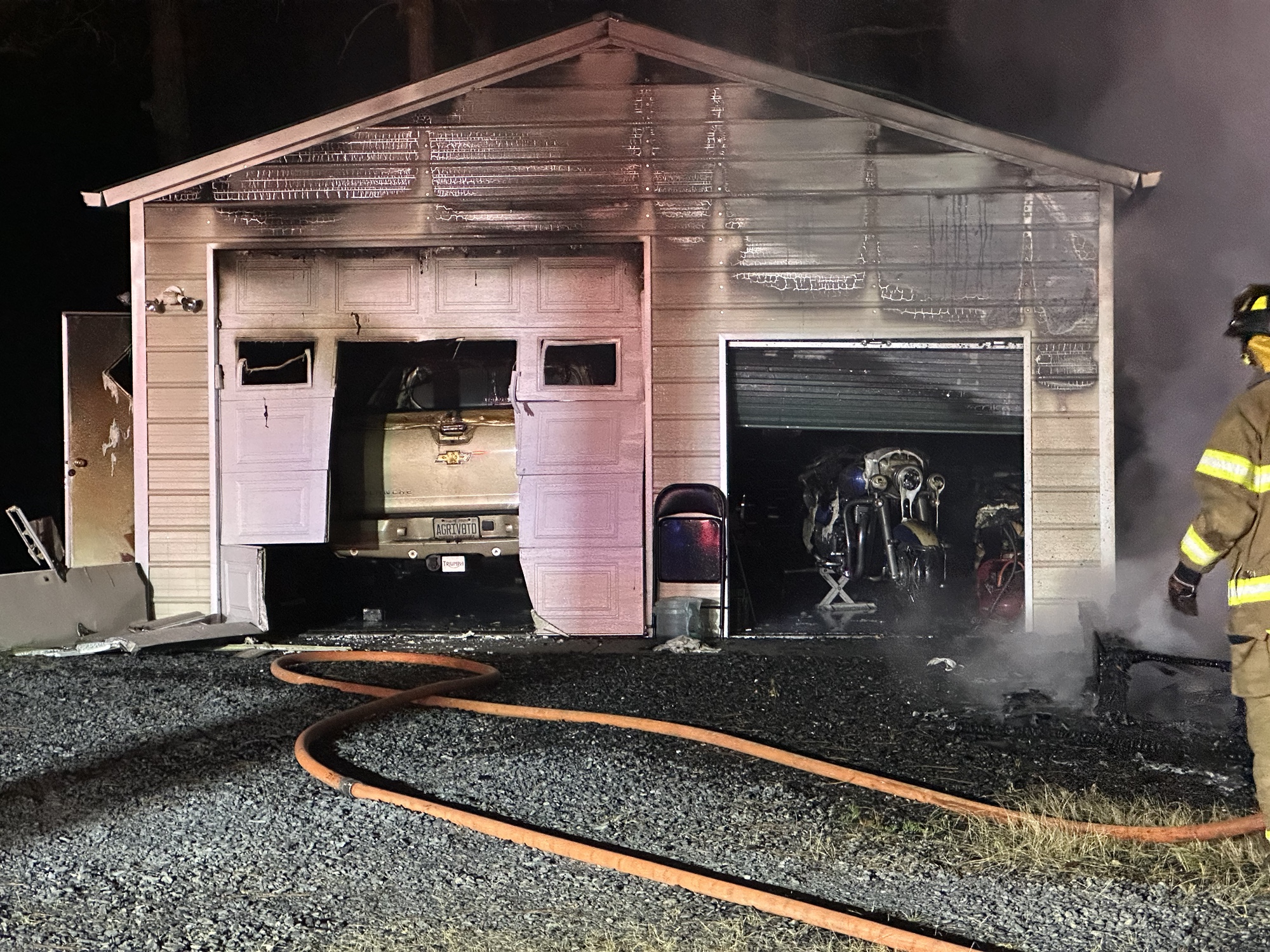 Firefighters from West End, Seven Lakes, Eagle Springs, Pinehurst, and Eastwood were initially dispatched before 1 a.m. to the 2700 block of Highway 73. When the first unit arrived, a building described as a workshop was fully in flames. A close by garage had smoke coming from it. The flames were eventually able to do some damage to the garage, including to a Chevy Avalanche and a Harley-Davidson motorcycle. The heat from the blaze also damaged the vinyl siding of a house at the address.
