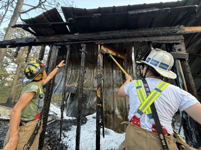 The blaze broke out off Highway 73 near the intersection with McKenzies Mill Road. According to authorities, the property owner had been burning debris near the building when the flames spread, igniting the structure and the surrounding area.