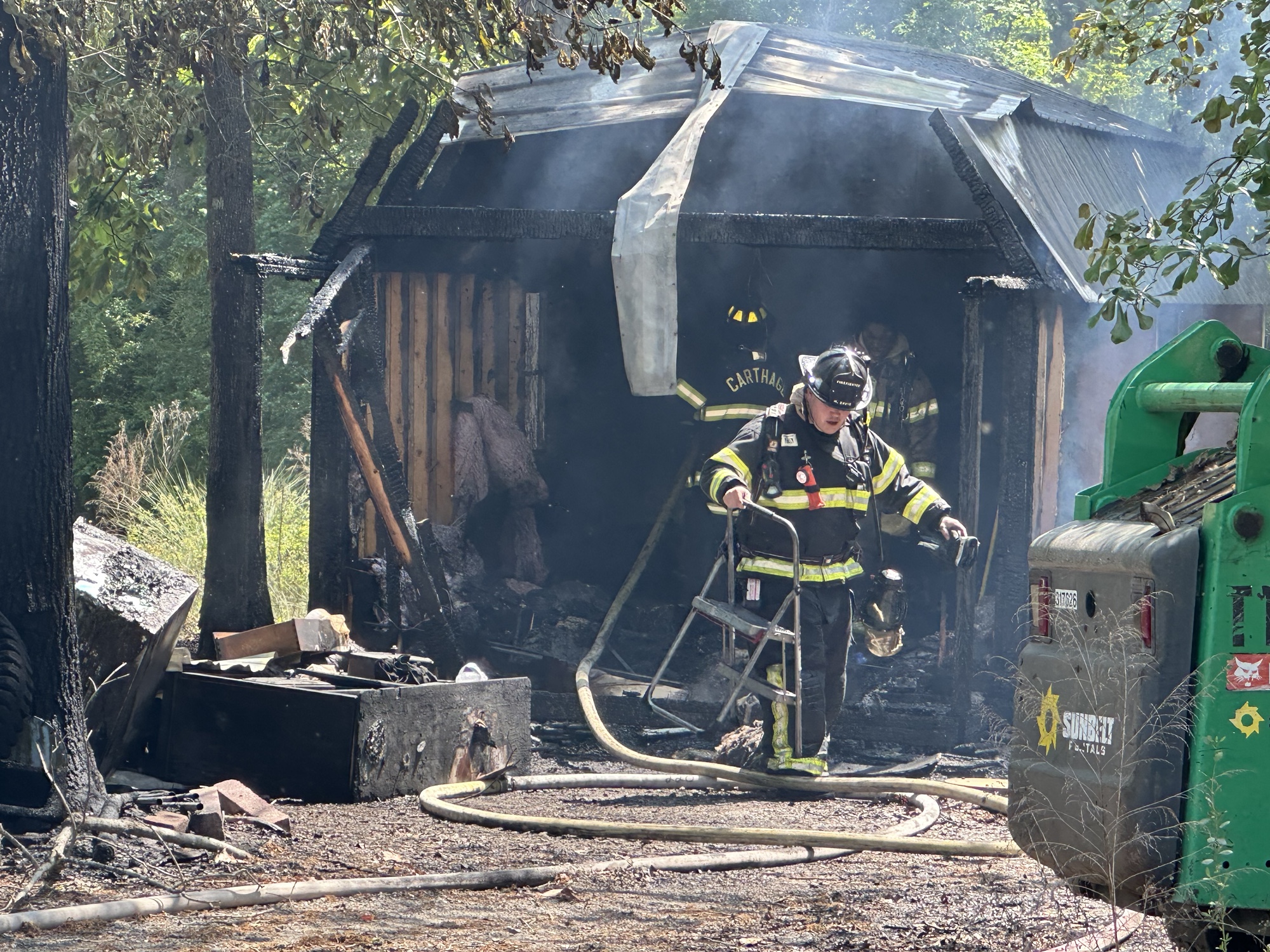 A fire spread to two storage sheds located near a house on Monroe Road outside of Carthage on Friday afternoon. According to scanner traffic, dispatchers first received a call about smoke in the area, and a deputy with the Moore County Sheriffs Department reported heavy smoke could be seen. A short time later, the call was upgraded to a fully engulfed structure fire.