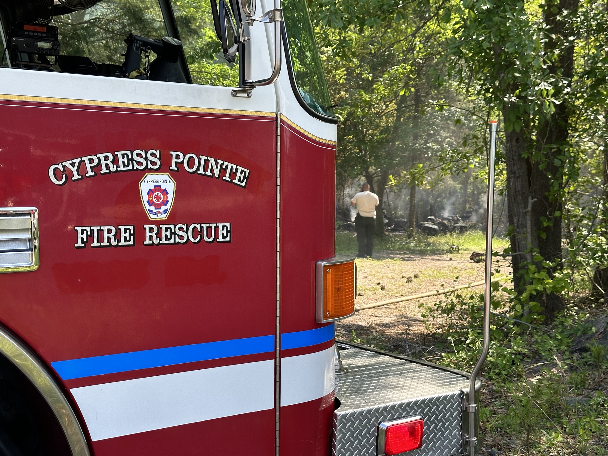 Fire crews from Cypress Pointe Fire & Rescue along with crews from Carthage and Whispering Pines were able to extinguish the flames quickly, and prevent it from spreading to a nearby home.