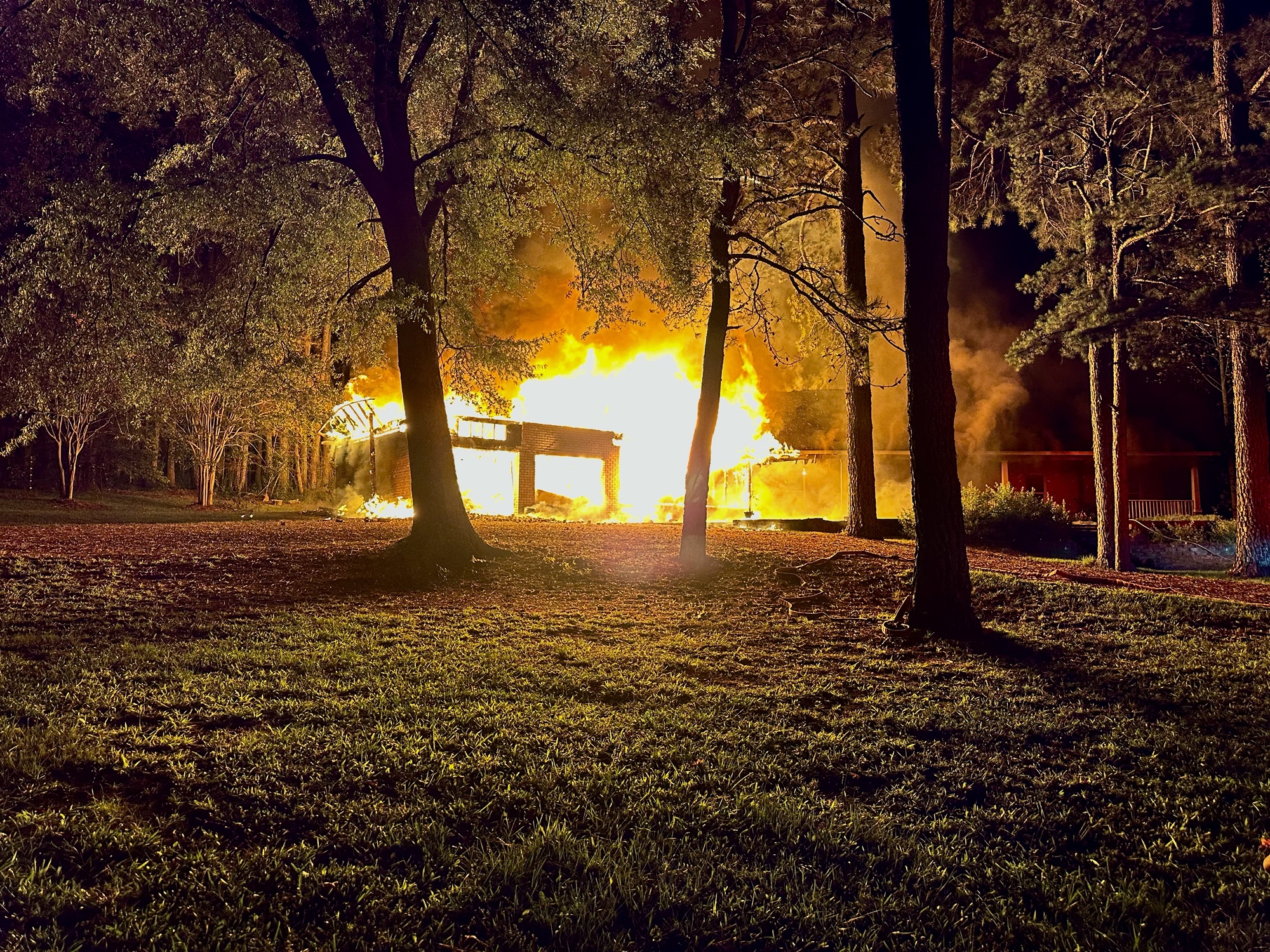 A two-vehicle garage burst into flames on Saturday night along the 500 block of Martin Road near Eagle Springs. Agencies from both Moore County and Montgomery County responded to the scene.