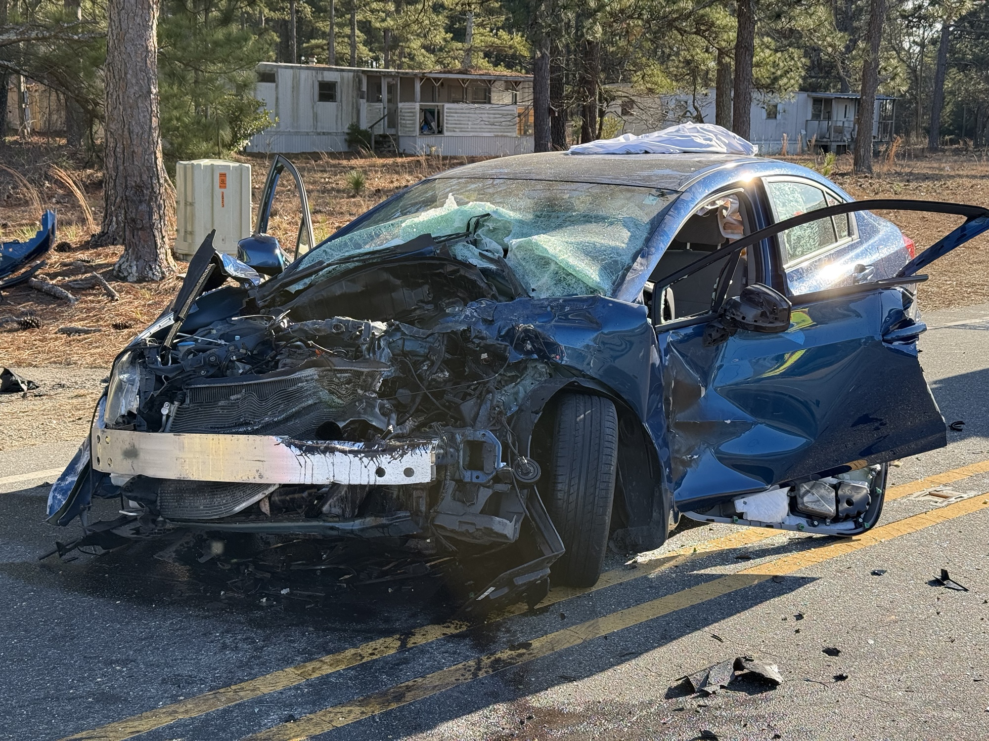Troopers investigating the crash say the Civic’s driver was traveling from Bensalem Church Road to Fire Tower Road when she entered the path of the semi-truck traveling south on Highway 705. The driver of the truck slammed on the brakes quickly, which authorities say likely prevented critical injuries to the other driver. The truck was transporting chicken feed to a nearby facility.