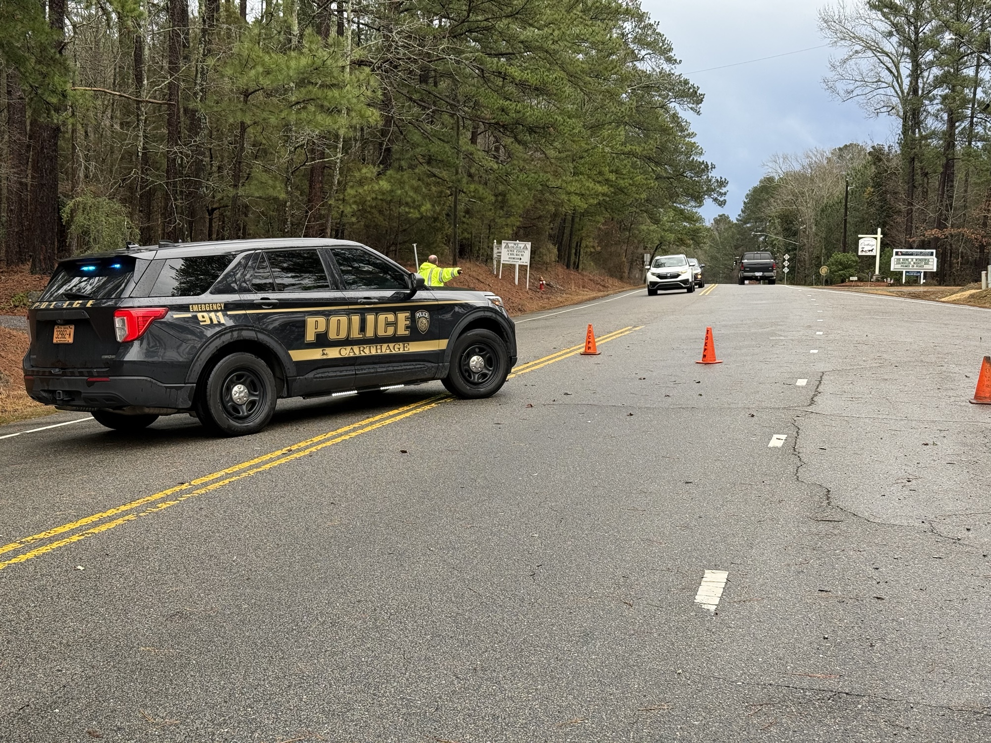 Carthage Police officers directed westbound traffic onto Bethlehem Church Road, detouring to J Dowdy Road to get back to the highway.