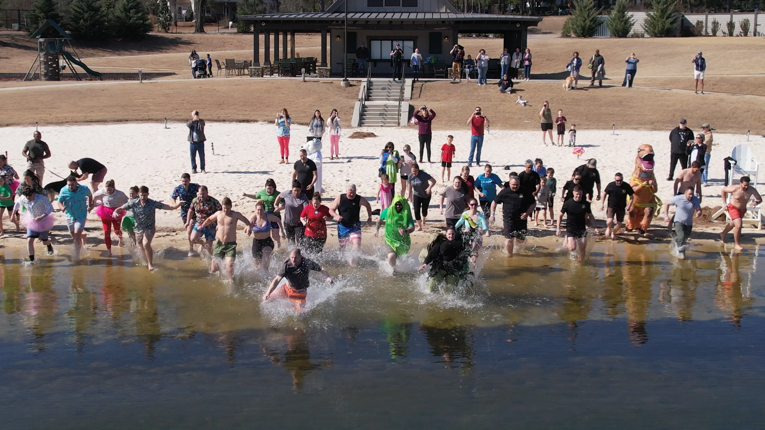 Participants gathered at Pinehurst Lake around 10 a.m., dressed in summer attire. While it may have felt like summer on land, the experience was quite different once they took the plunge. The lake’s temperature hovered in the mid-50s on Saturday morning.