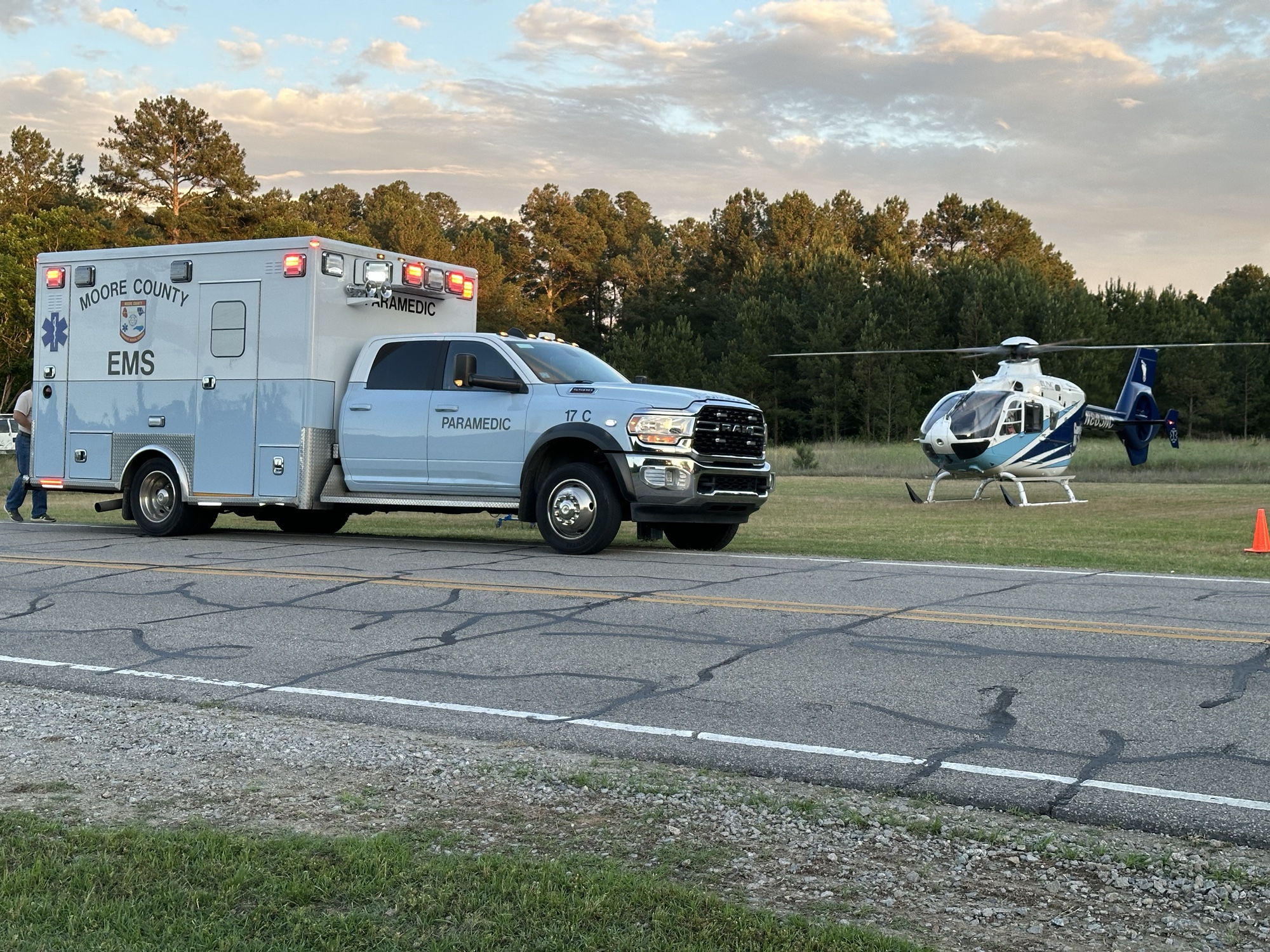 UNC Carolina Air Care was placed on stand by immediately. When Seven Lakes Fire & Rescue arrived to the scene, they requested Air Care to respond and set up a landing zone on Carthage Road near Fat Monkey Express.