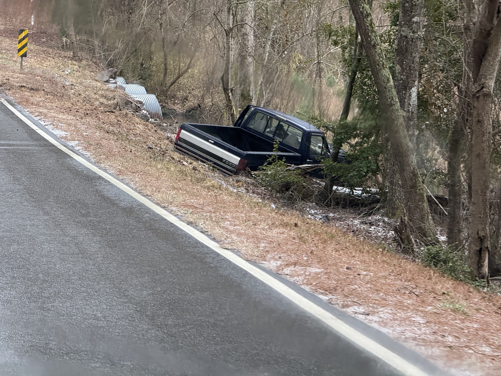 A truck also slid off the road along Beulah Hill Church Road near Hardee Branch Road.