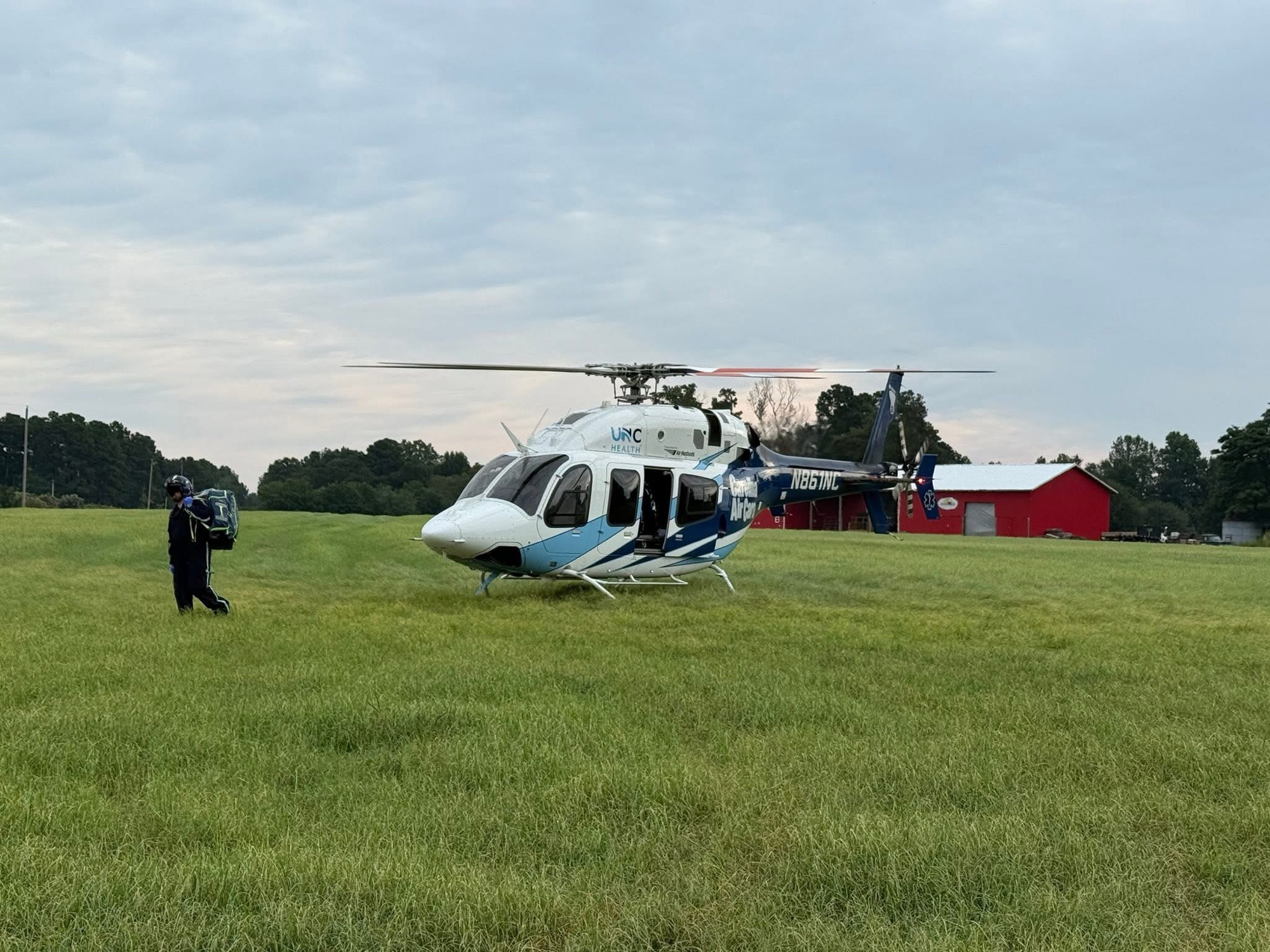 The Carthage Fire Department set up a landing zone on Union Church Road, where Air Care transported the victim to a trauma center. His condition has not been released.