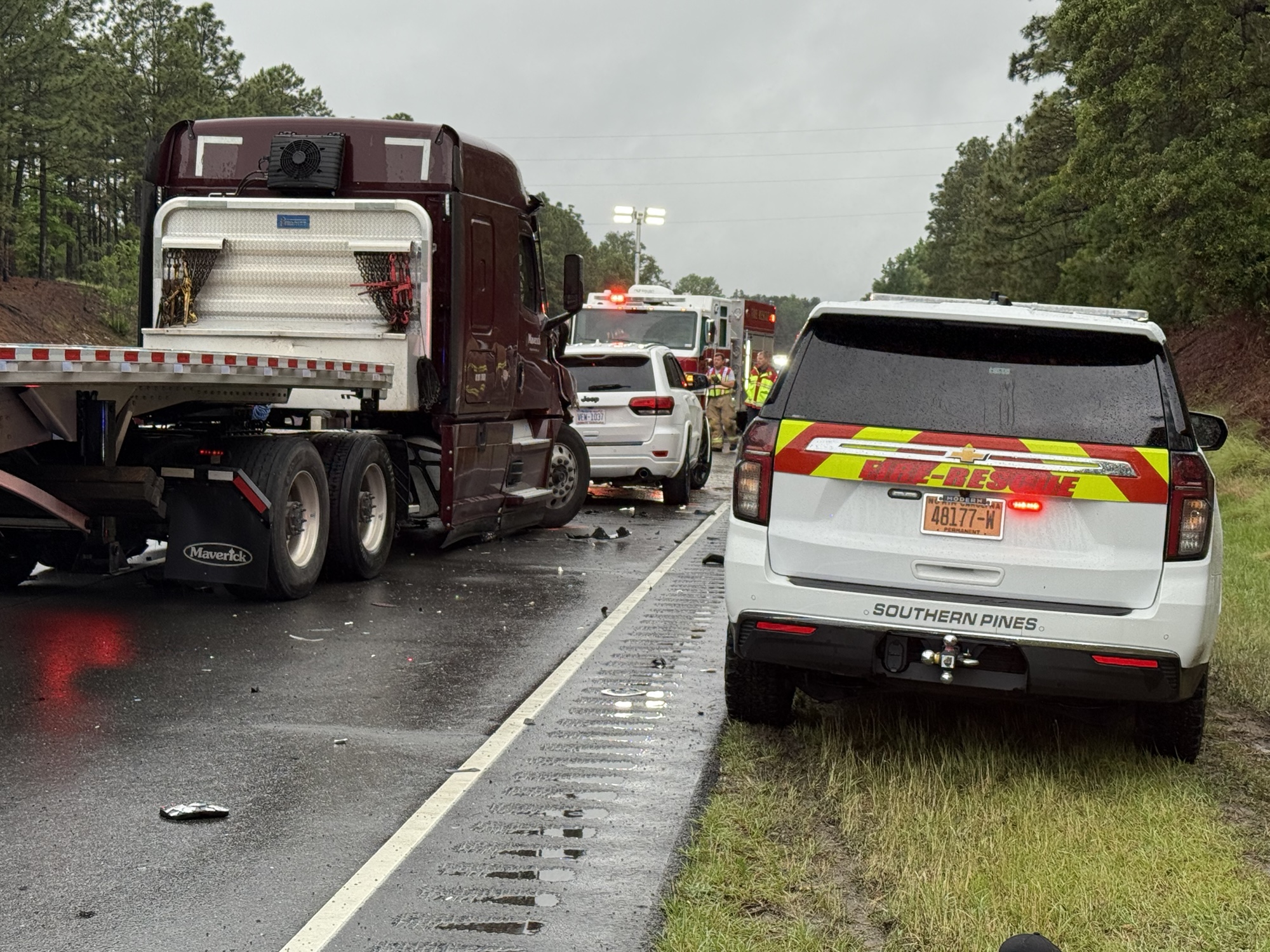 The collision, which involved a semi-truck, a Jeep Grand Cherokee, and a Jeep Cherokee Limited, occurred shortly before 5:30 p.m., according to authorities.
