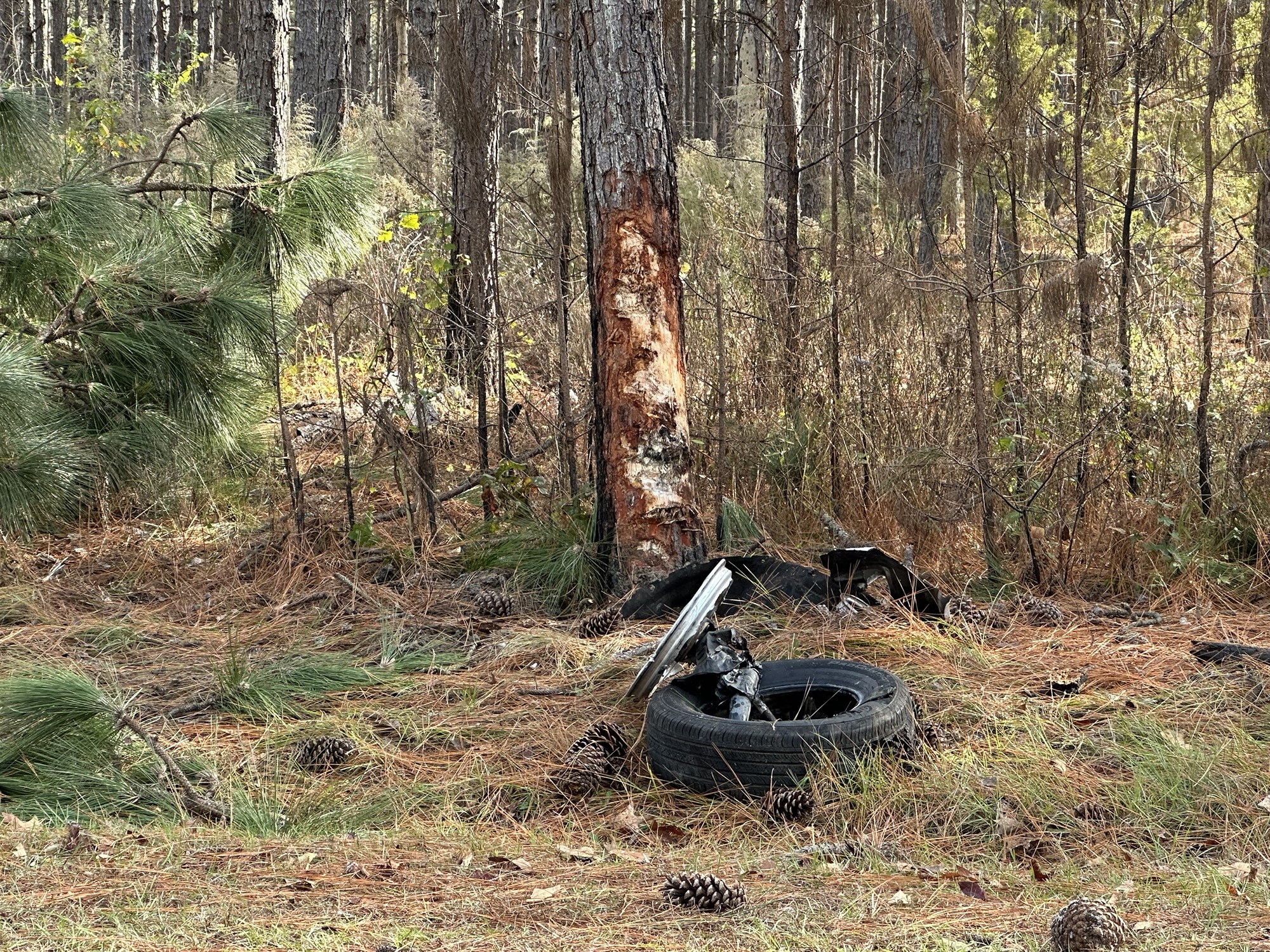 A man has died after crashing a Ford Escape Hybrid into several trees, sparking a vehicle fire along Big Oak Church Road near Highway 211. The collision happened shortly after 9 a.m. on Monday just south of Skill Road.