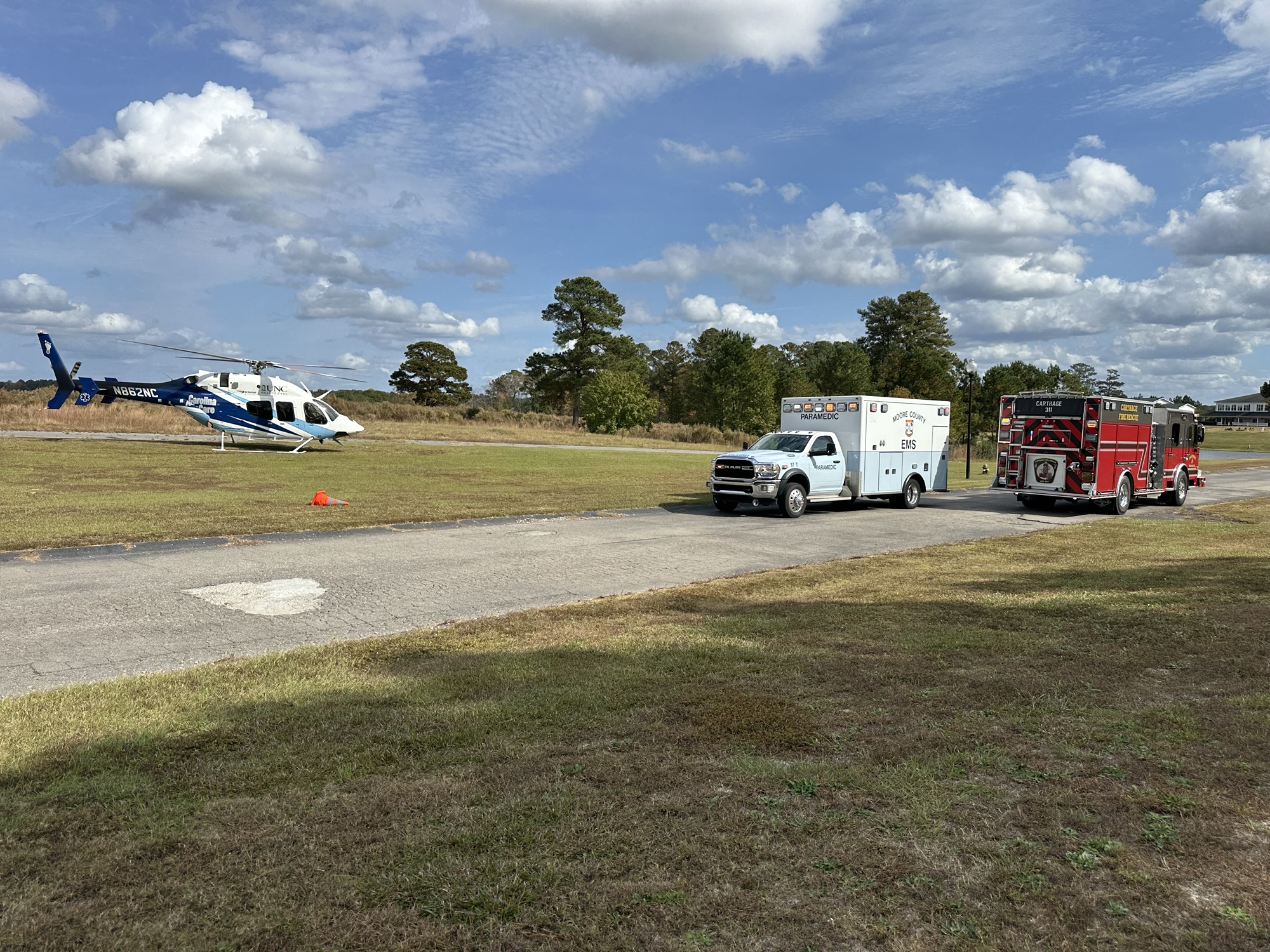 No details were released on what kind of training exercise was taking place at the time of the incident. Moore County News saw multiple vehicles leaving the area once the man was flown out.