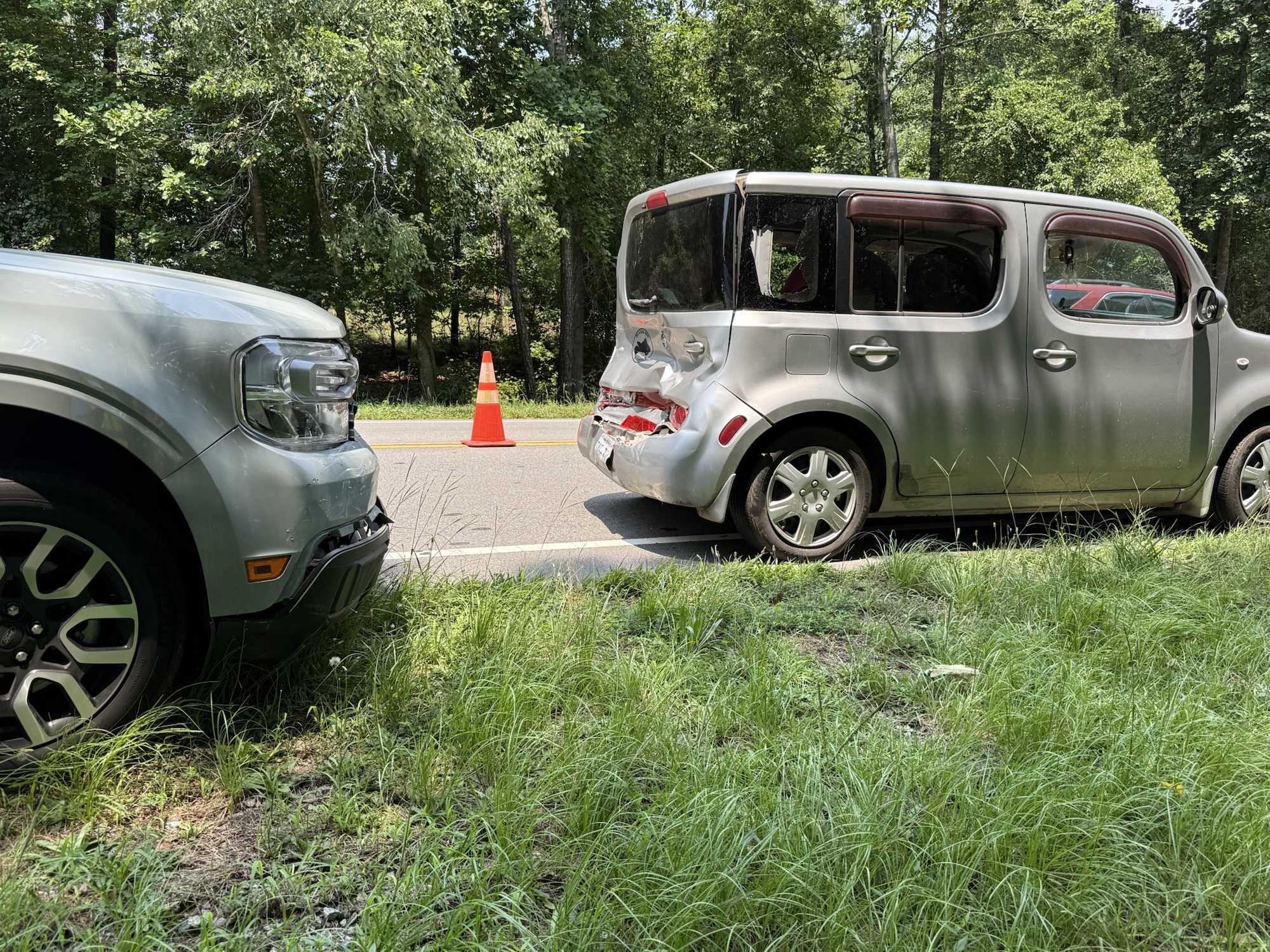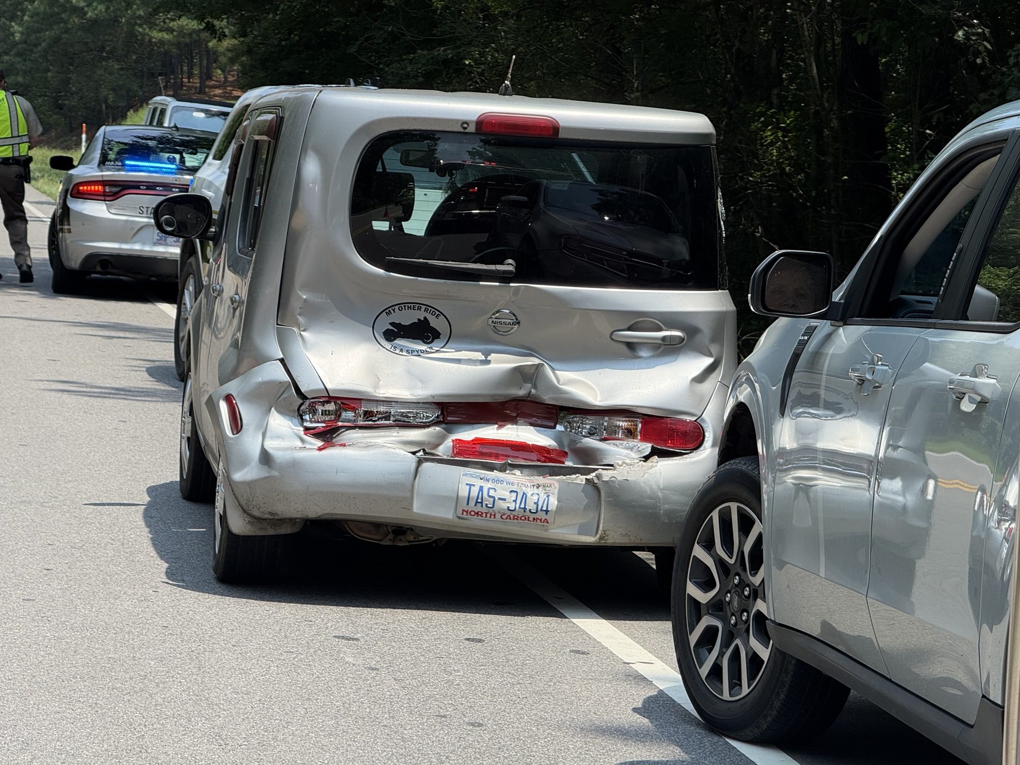 The wreck happened just north of the Highway 73 intersection in the Eastwood community and involved a Ford Maverick pickup truck and a Nissan Cube. According to a state trooper at the scene, the driver of the Cube going northbound had slowed down when it was struck from behind by the Maverick.