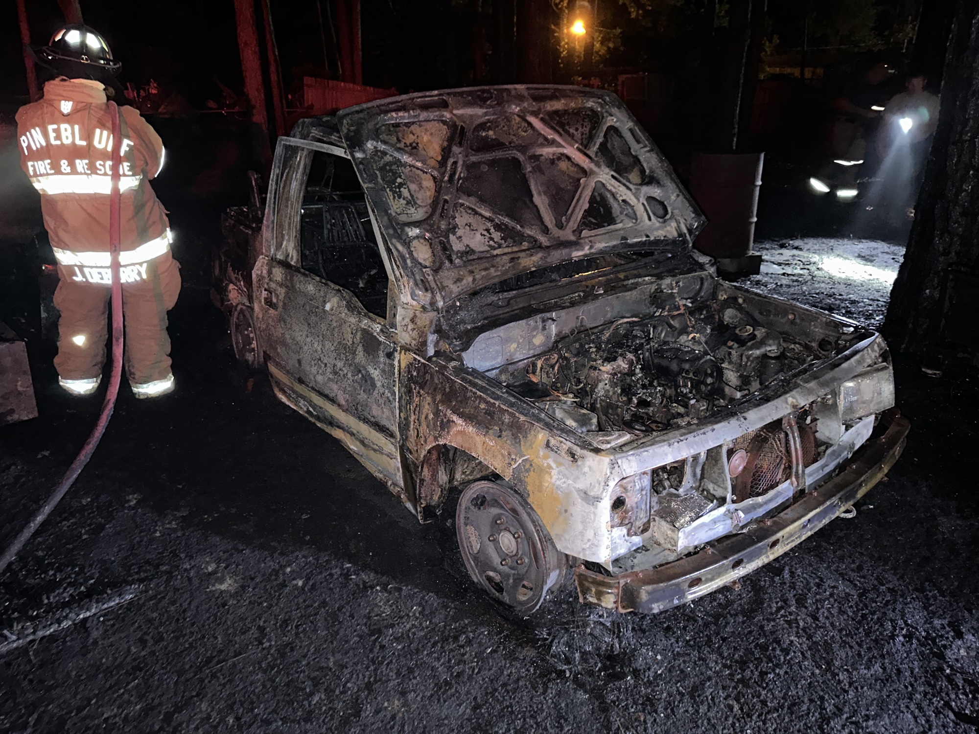 Firefighters from Pinebluff were able to get the flames knocked down before it was able to cause major damage to a nearby mobile home.