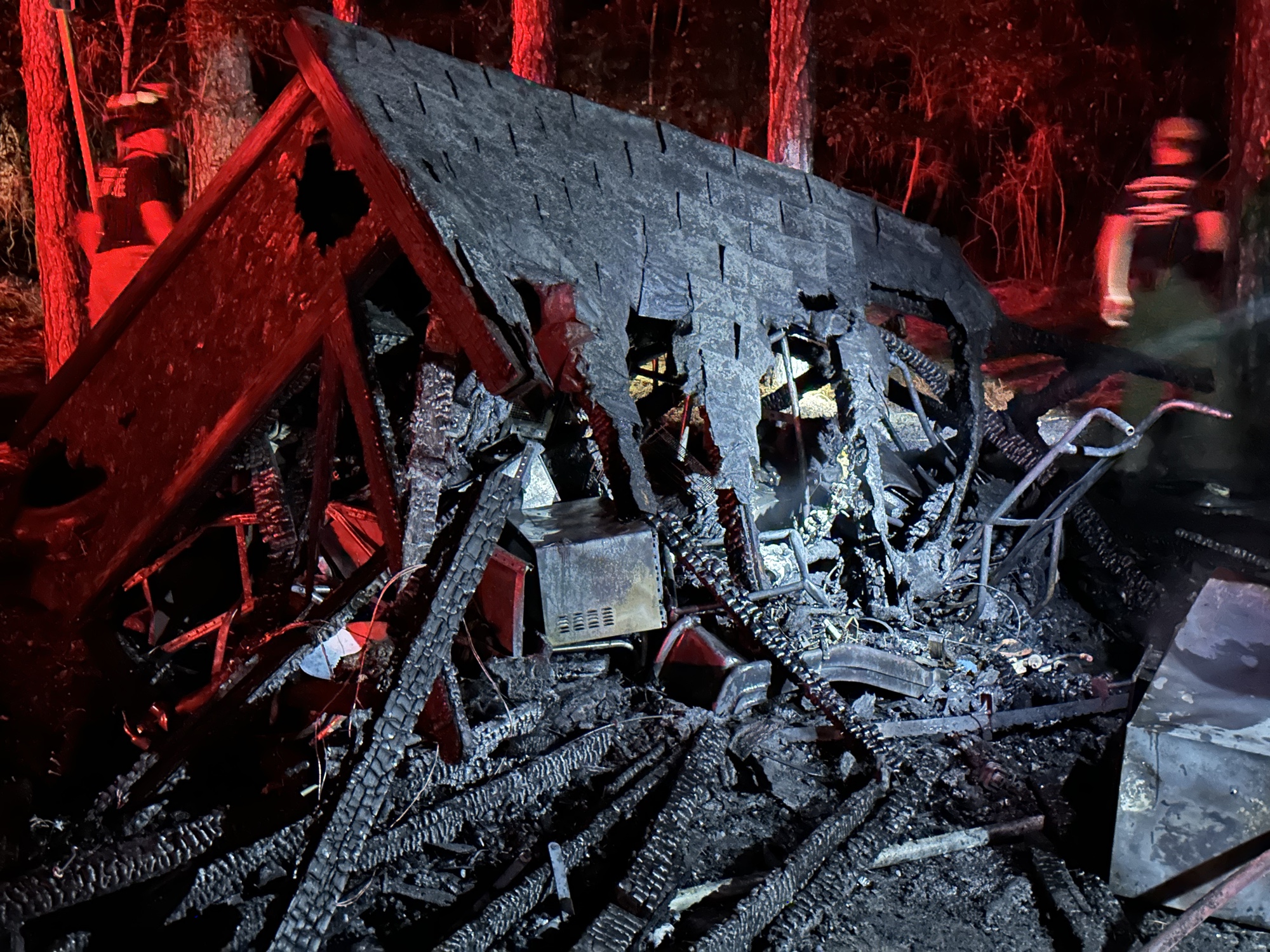 Investigators from the Moore County Fire Marshals office was seen inspecting the charred building and cars.