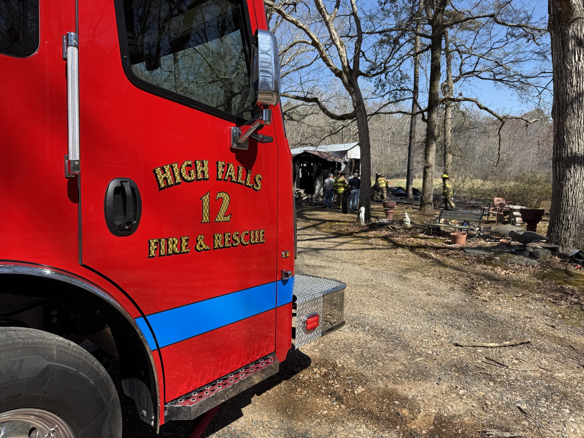 Fire command told Moore County News at the scene that the homeowner was burning leaves when the flames quickly spread out of control. The fire reached a storage shed, which erupted in flames. By the time the first fire units arrived, the structure was fully involved, and the fire was advancing toward a second building on the property.