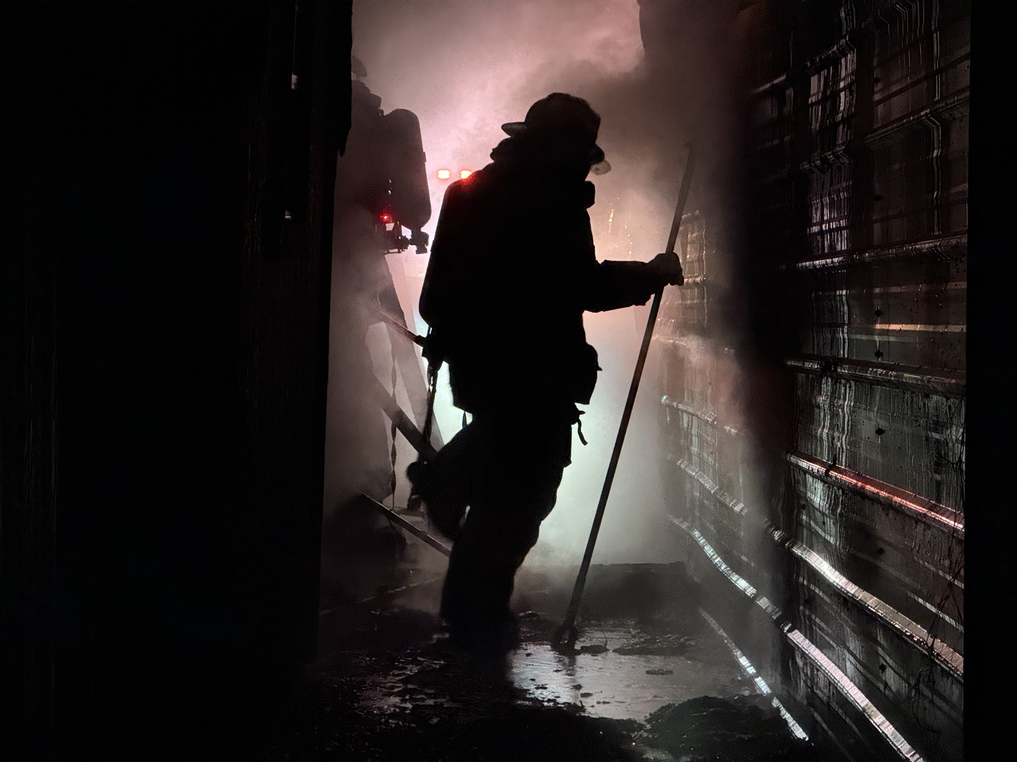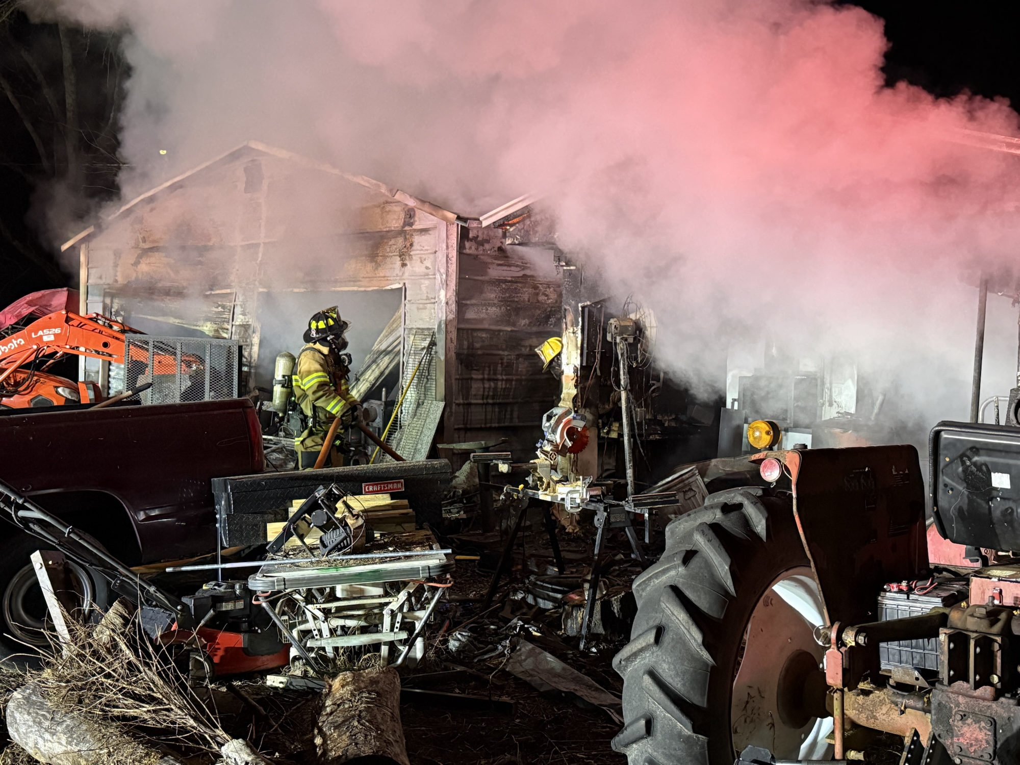 Due to flammable materials in the garage, firefighters worked through the night to extinguish hot spots, clearing the scene around 3 a.m.