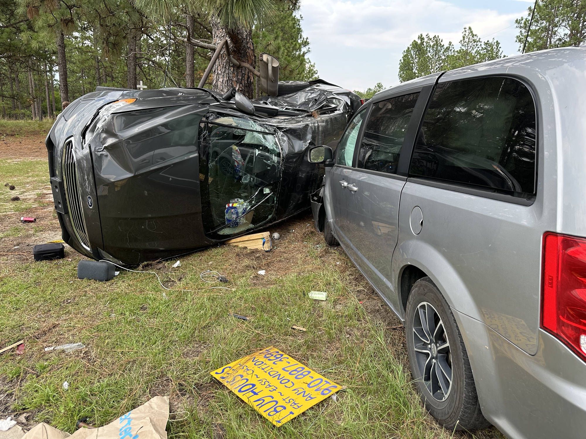 According to Troopers who are investigating the crash, a Ford Fusion was crossing into U.S. 1 from Thunder Road into the path of a northbound minivan. The minivan collided with the Fusion on the passenger side, and the impact caused the Fusion to overturn and get pushed into a tree.