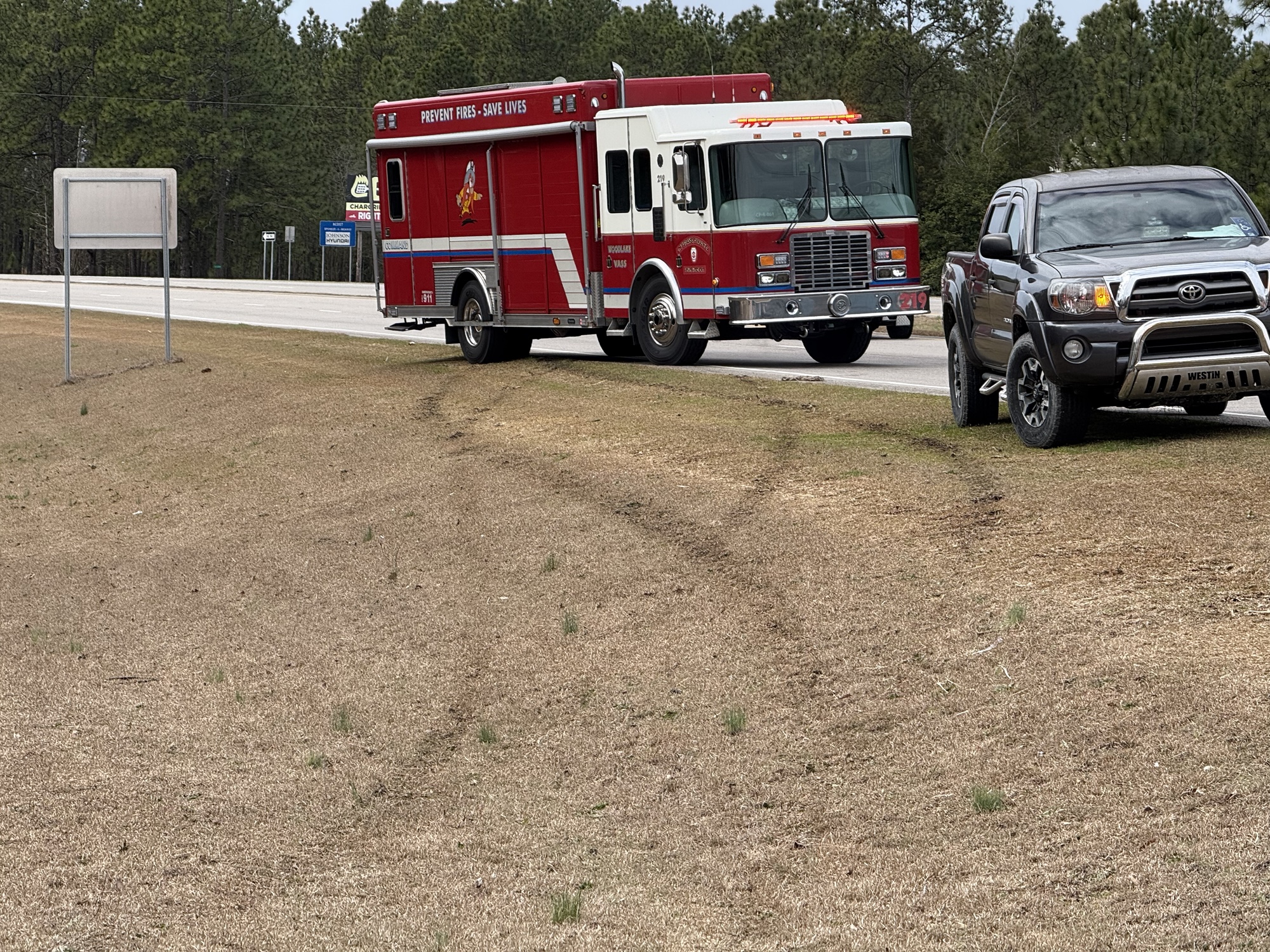 Just after 10 a.m., first responders arrived at the scene of a heavily damaged Nissan Sentra that had struck a tree. Although the vehicle was off the roadway, firefighters closed the right lane of the highway to ensure a safe investigation of the crash.