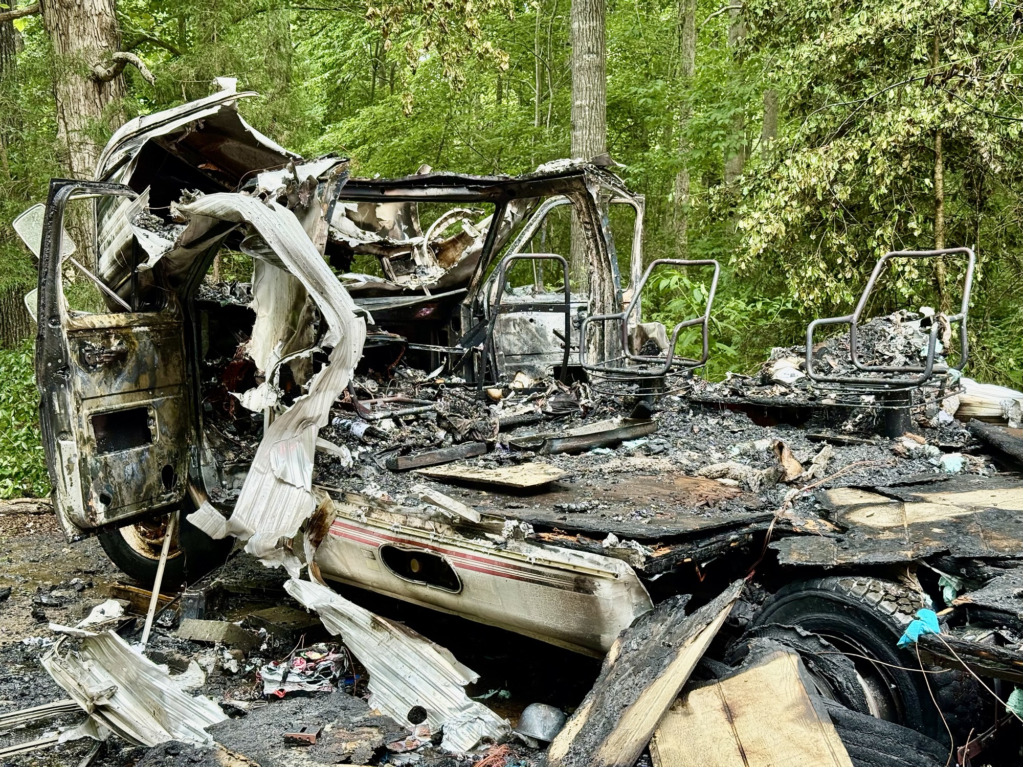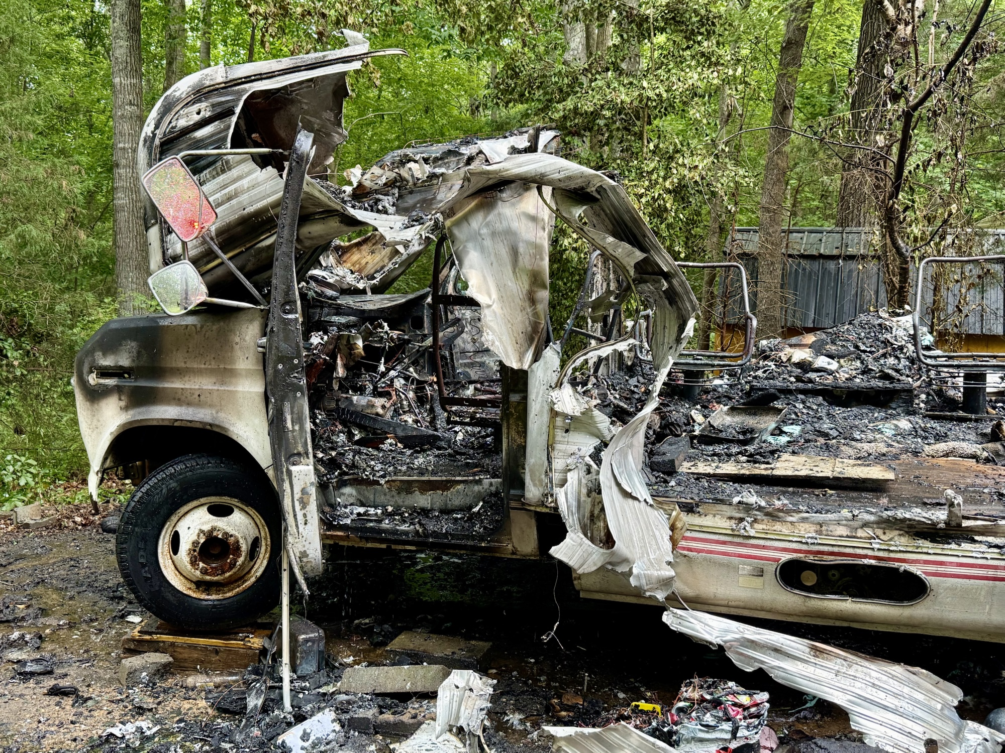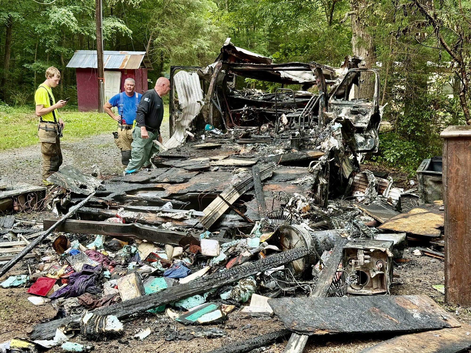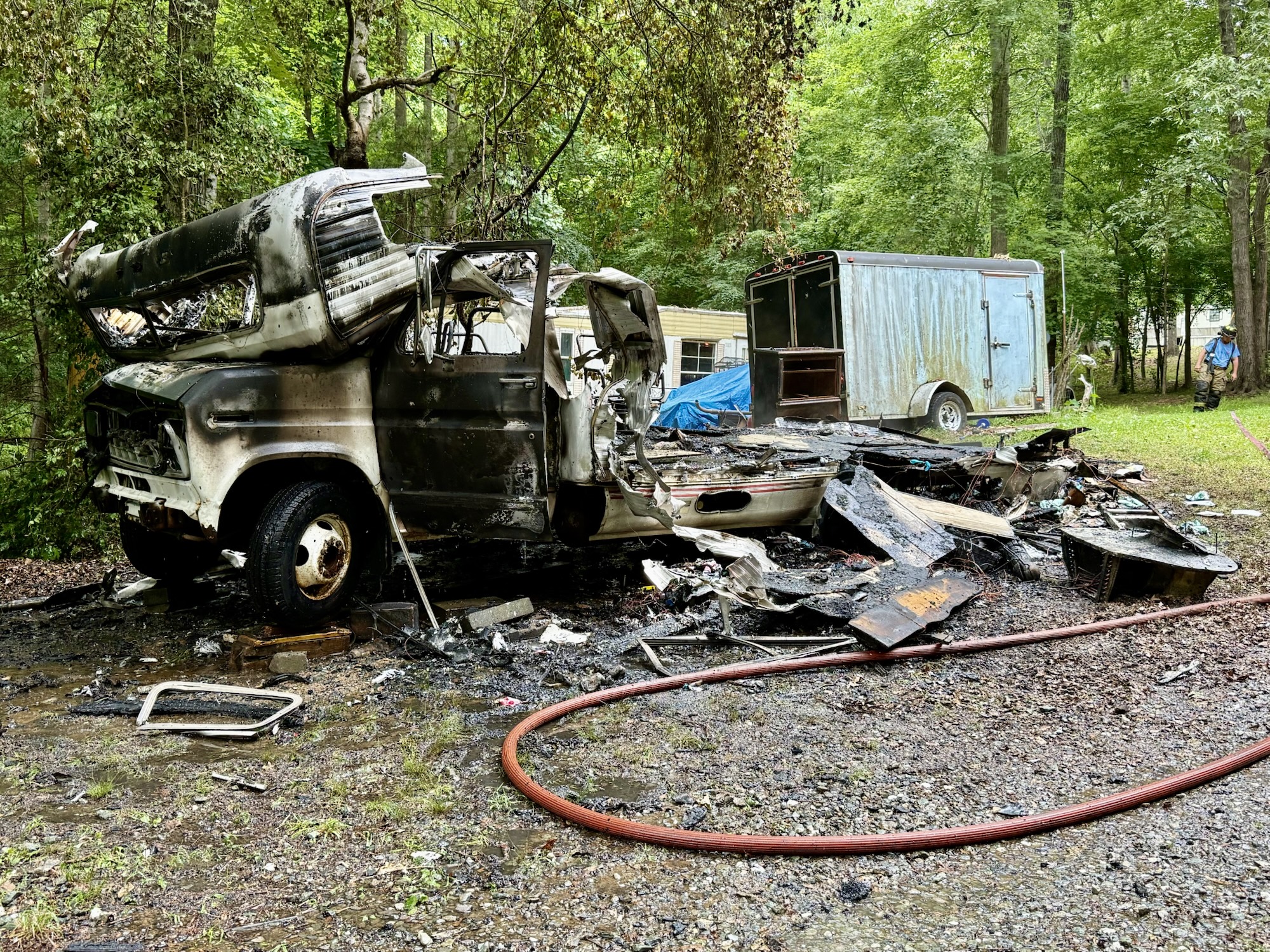 Authorities said one person had been living in the RV with his dog at the time of the fire. According to officials, the resident told them he had walked down the road briefly, and upon returning, discovered the RV in flames.