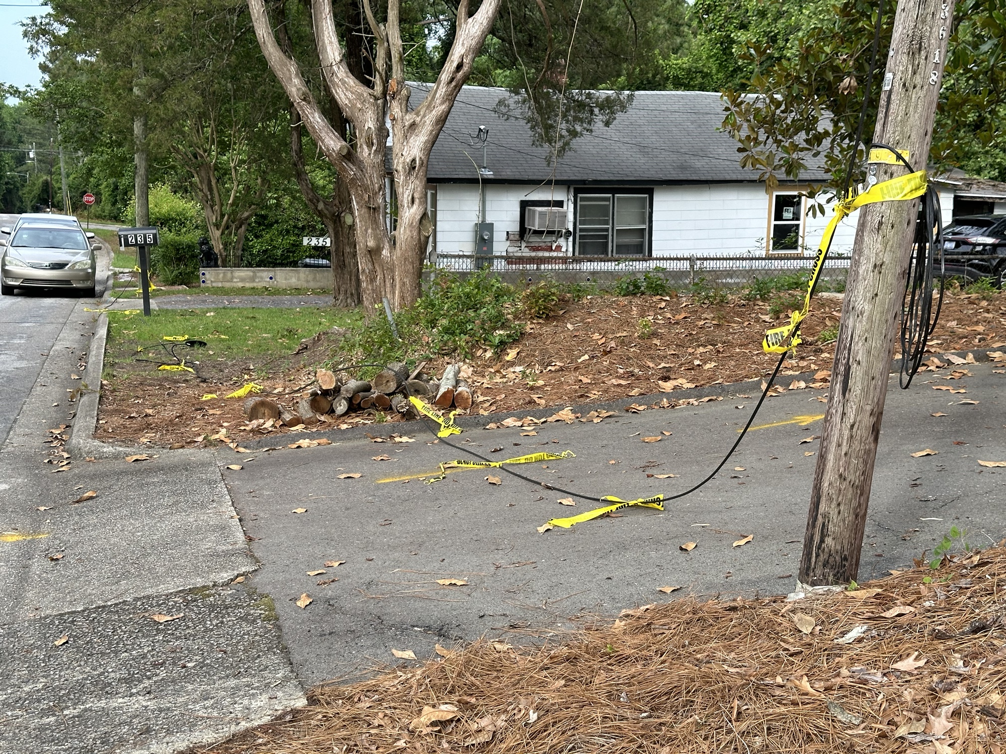 Shortly after the call in Pinehurst, a third call of a line down on Barber Road near Hill Road in Southern Pines was dispatched. This line was not completely touching the ground, but was hanging low over the roadway. Southern Pines Fire marked the line with yellow caution tape. Authorities were unable to determine how the line came down.