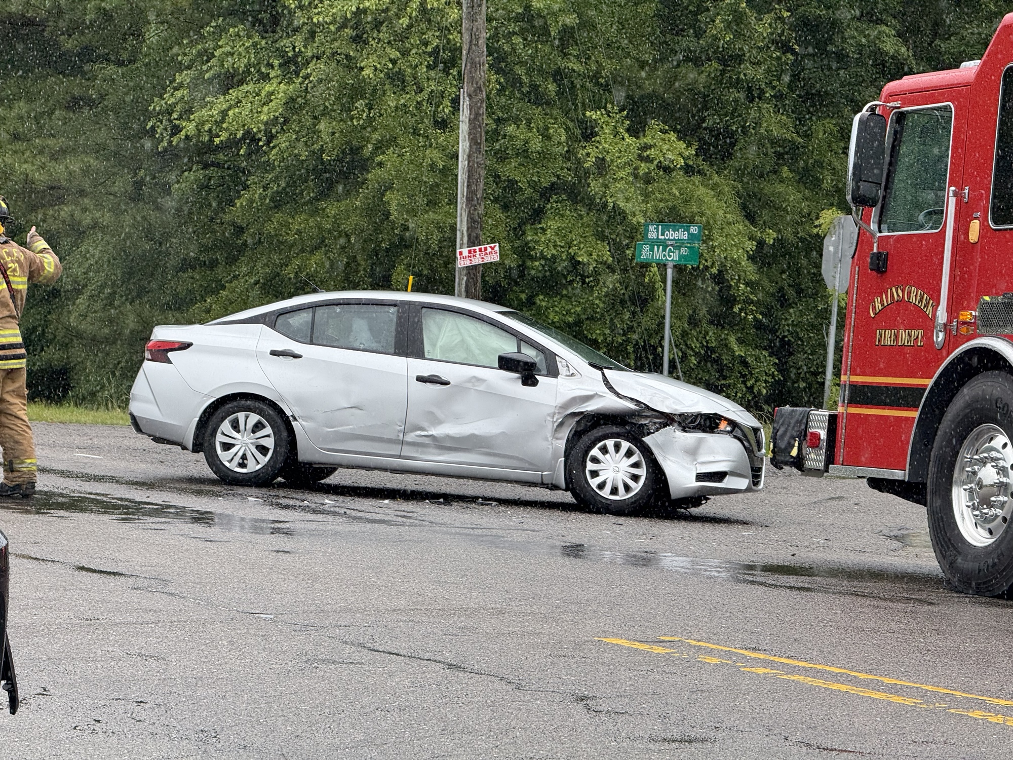 The N.C. State Highway Patrol says the crash happened around 3:30 p.m. when the driver of a Nissan Versa attempted to turn left from McGill Road onto eastbound Lobelia Road toward Fort Bragg. Troopers said the Versa failed to yield to a Toyota RAV4 that was traveling straight across the intersection to remain on McGill Road.