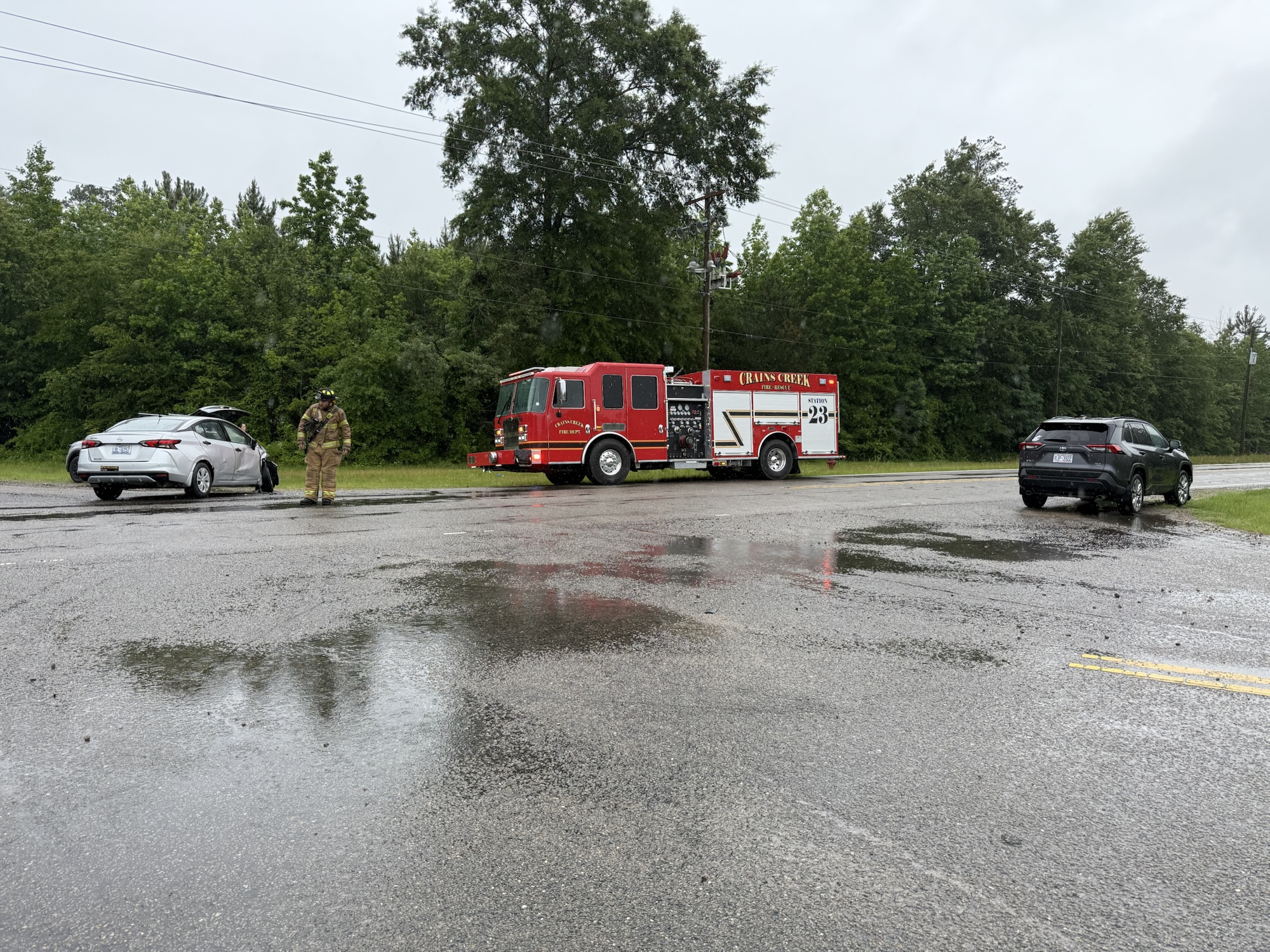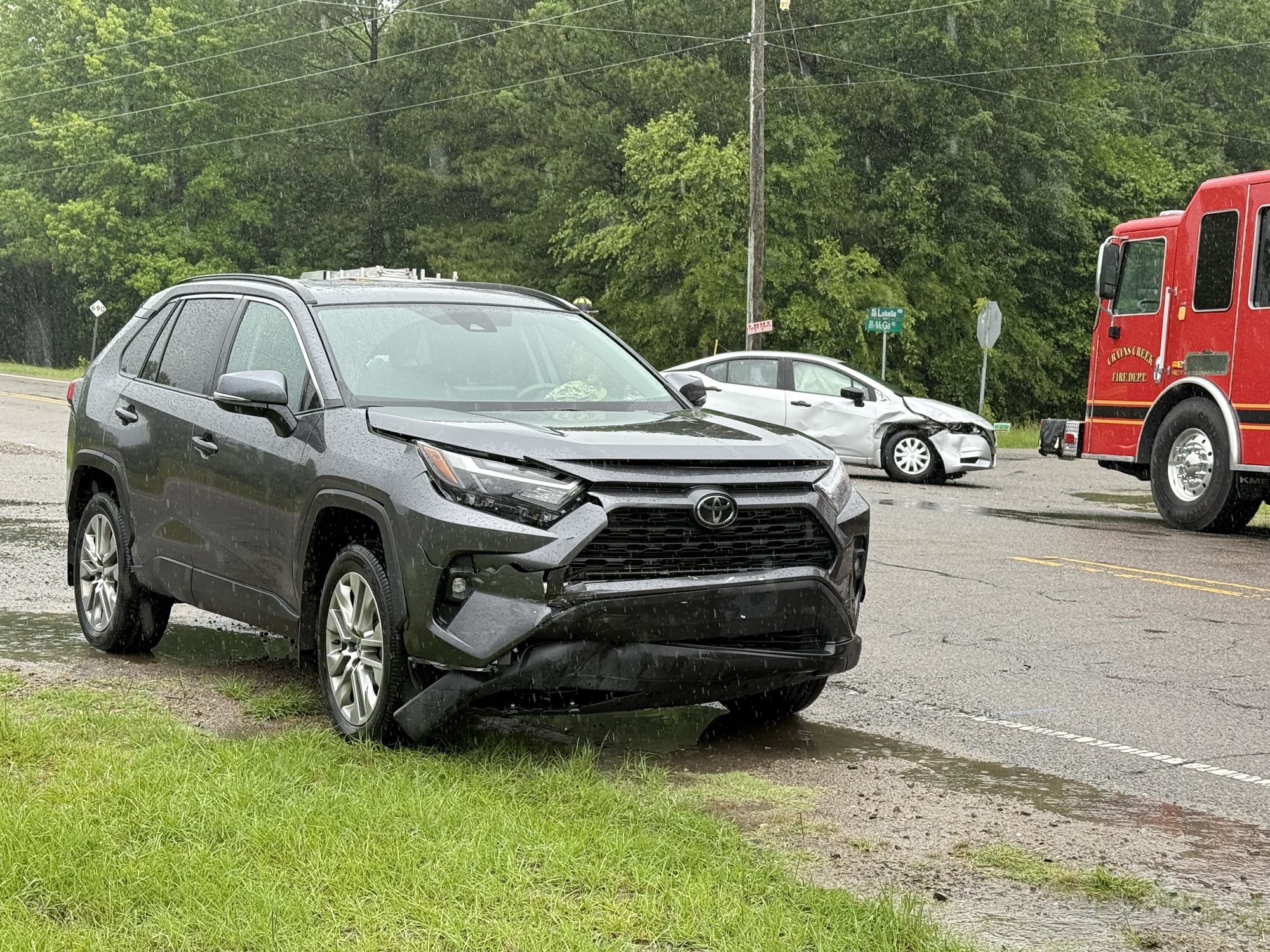 The Crains Creek Fire Department closed the westbound lane of Lobelia Road and directed traffic through the intersection while emergency crews were on the scene.