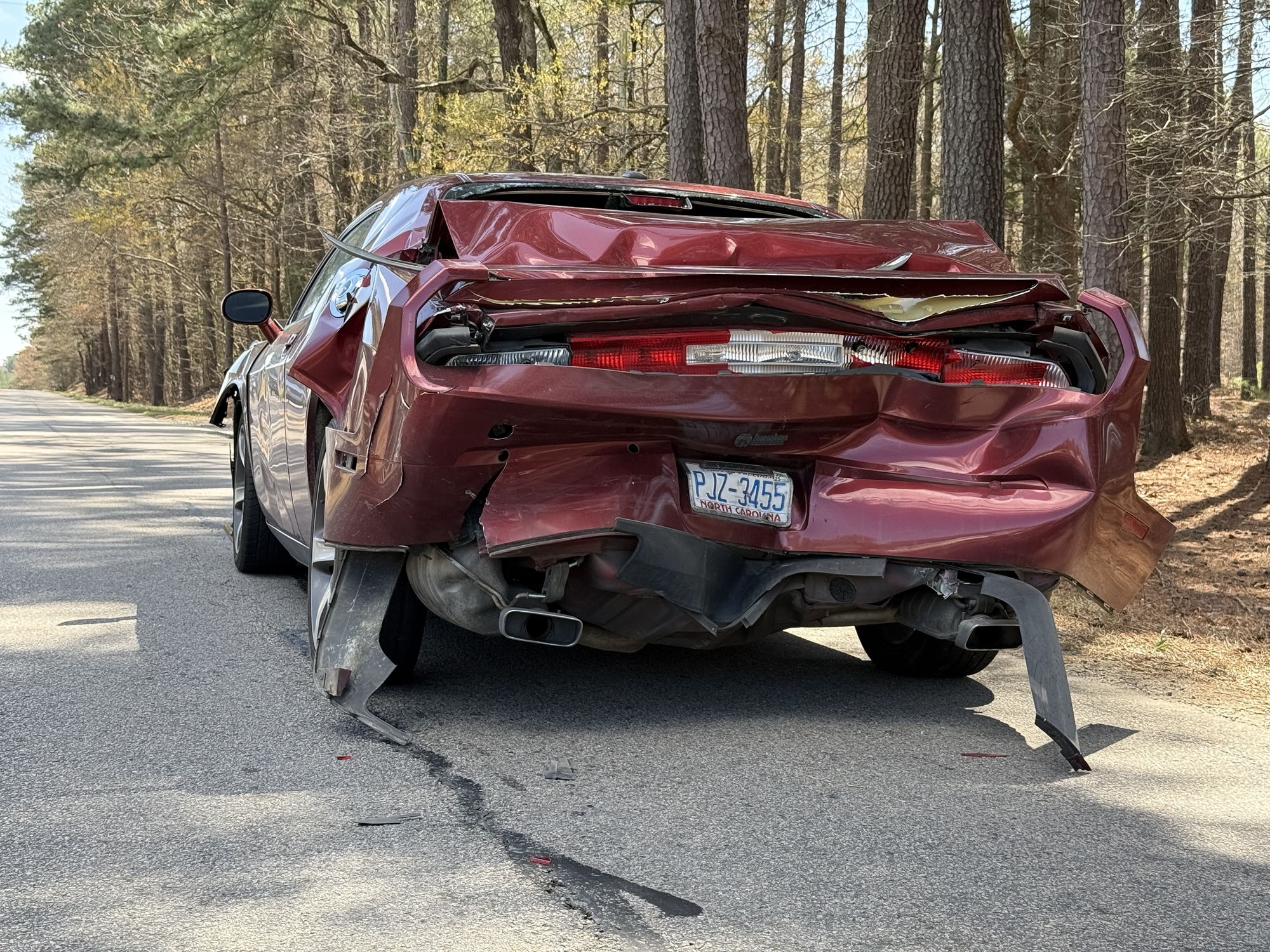 The Challenger sustained heavy damage to both its front and rear, but no injuries were reported.