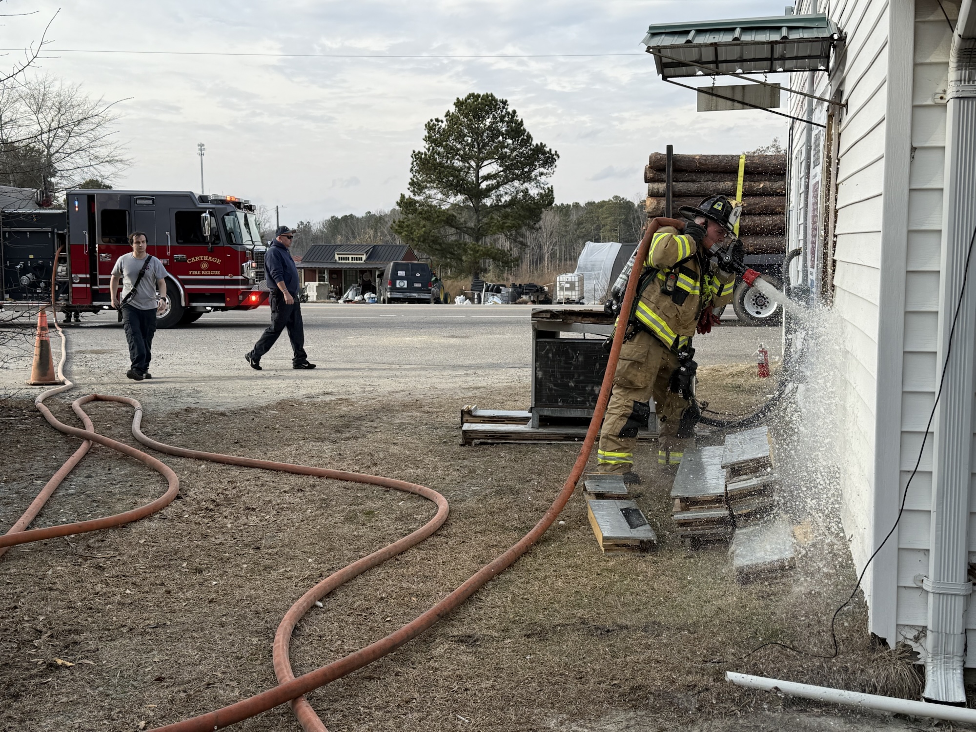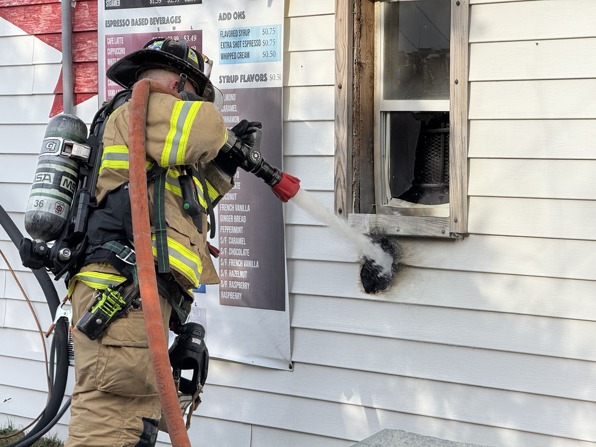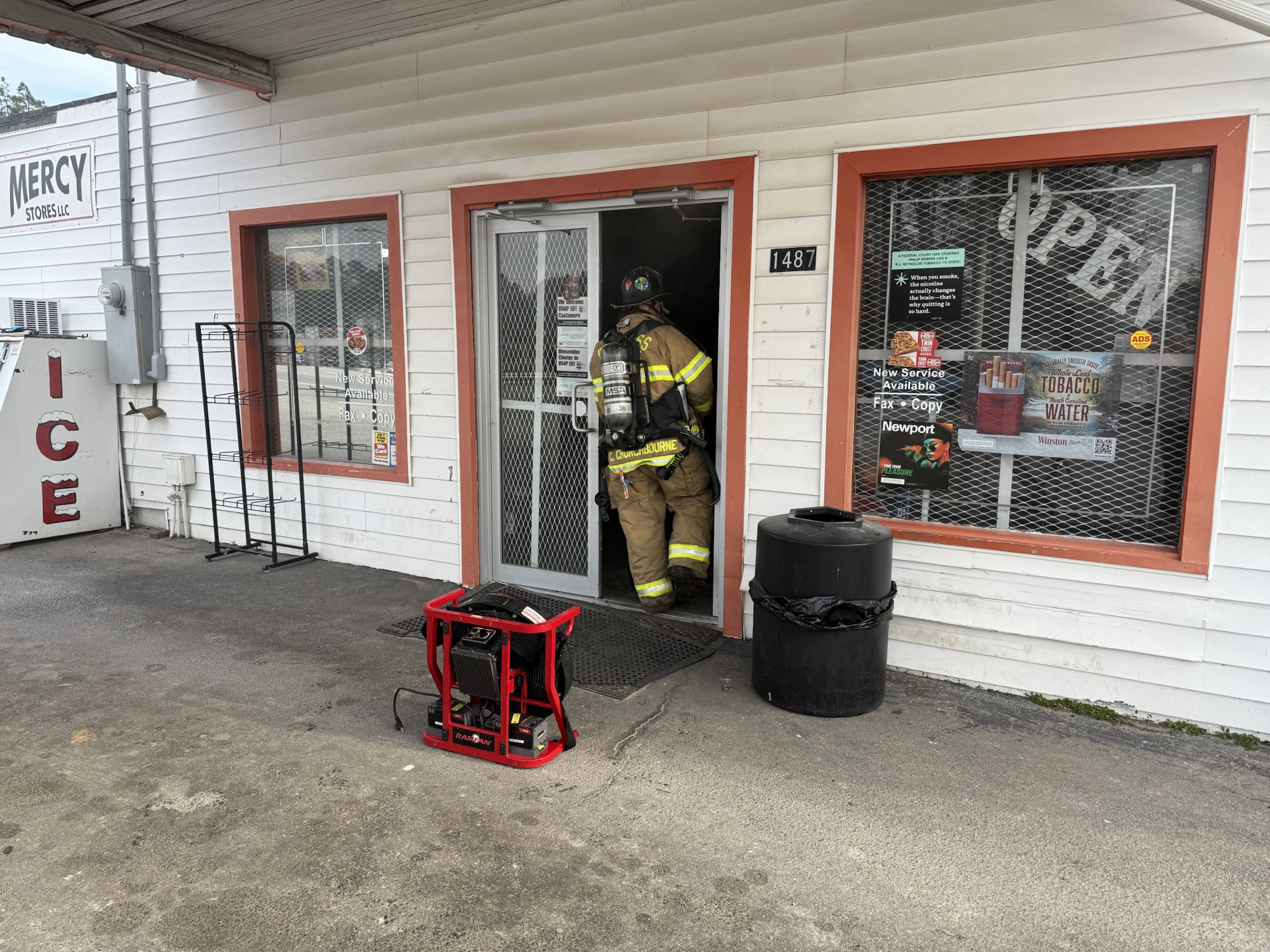 Firefighters arrived to the scene around 3:30 p.m. to flames and smoke coming from a wall on the right side of the building. A firefighter that was nearby arrived in his personal vehicle and used a fire extinguisher to knock down the flames until a fire engine could arrive. Once the fire engine arrived, firefighters were able to quickly extinguish the fire complete.