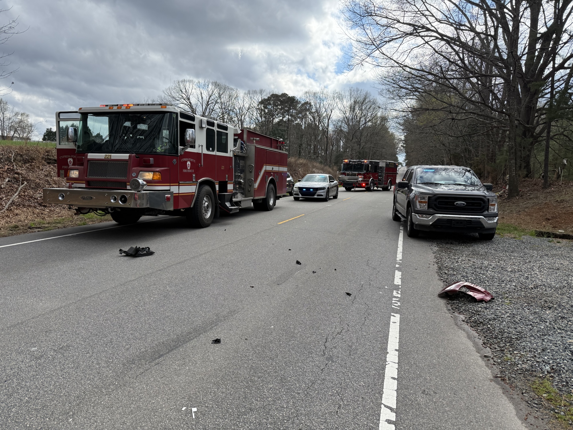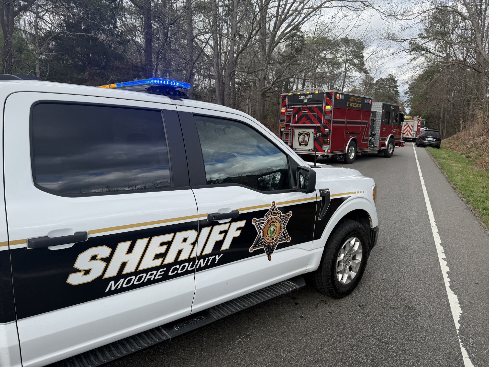 The collision occurred just after 4 p.m. and involved a Moore County Schools service truck and a Dodge Ram pickup truck. According to authorities, the service truck was traveling northbound, while the Dodge was heading southbound.