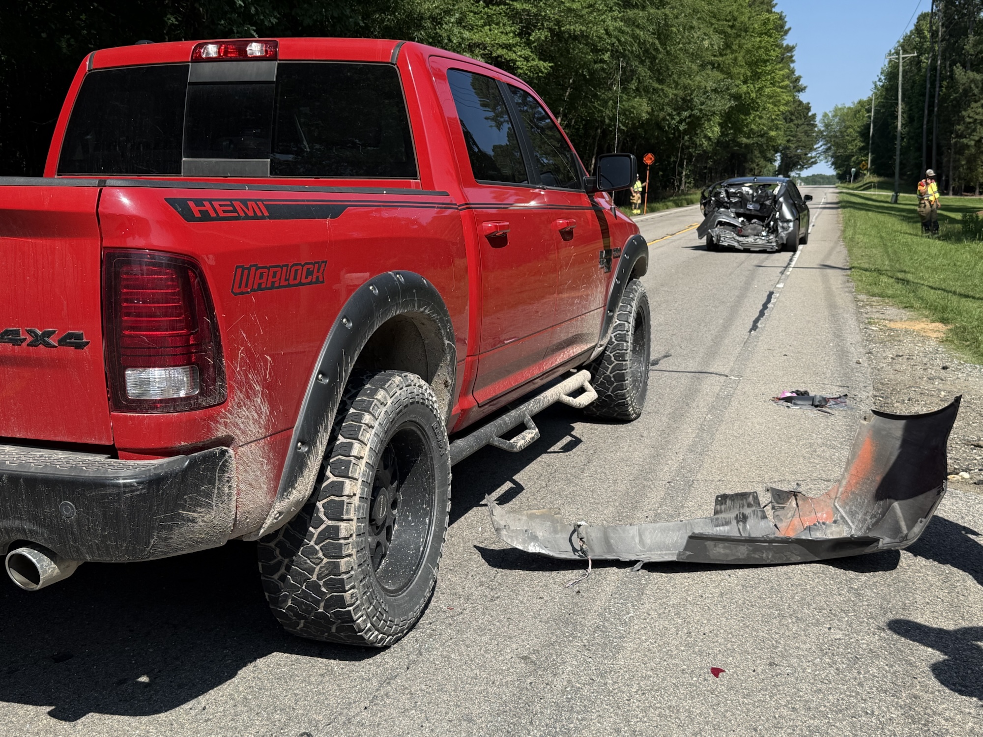 Troopers say the driver of a Dodge Ram rear-ended a Nissan Versa as both vehicles traveled eastbound. The driver of the Versa had slowed to turn left into a driveway when the truck failed to stop in time, colliding with the car.