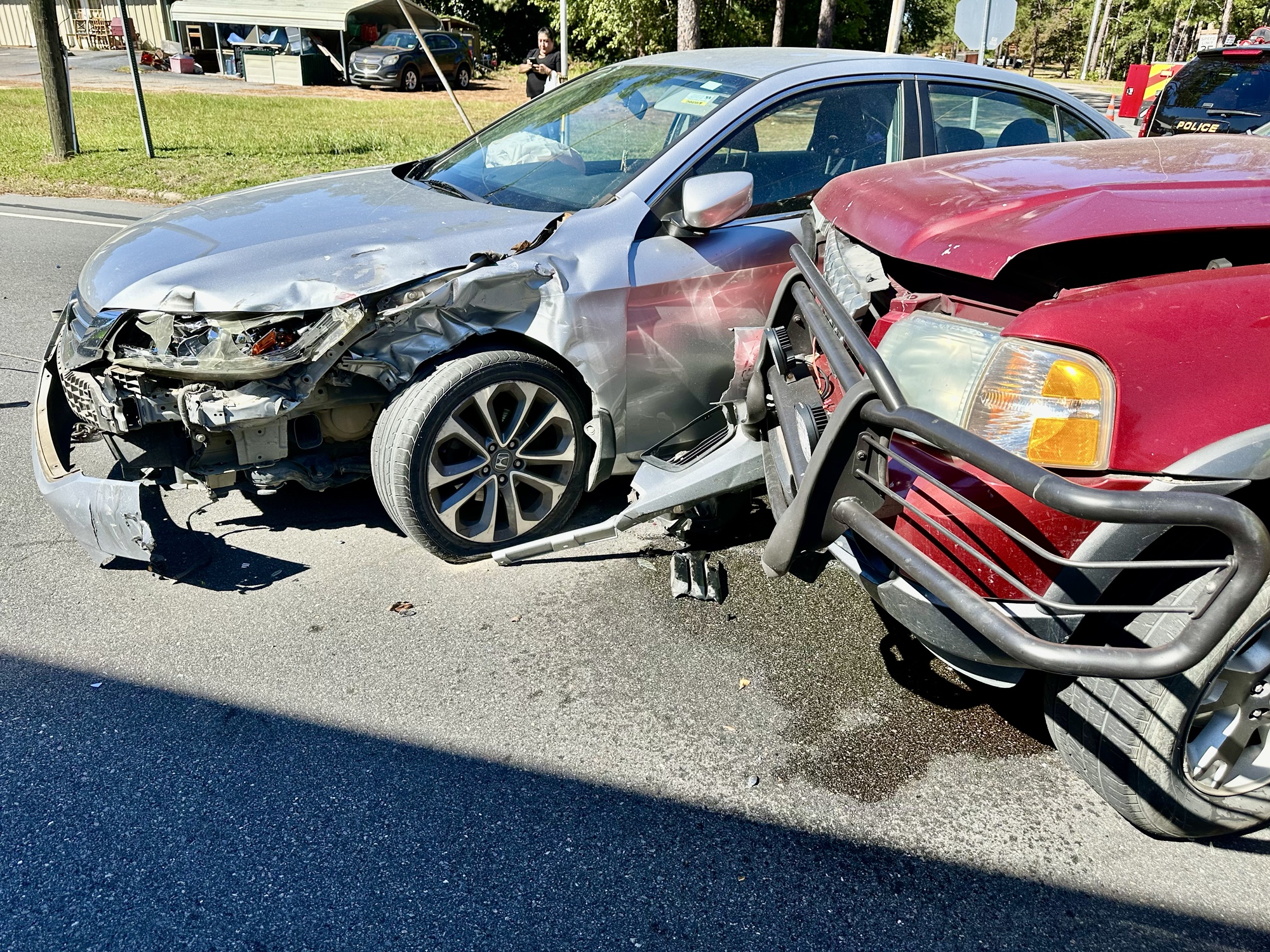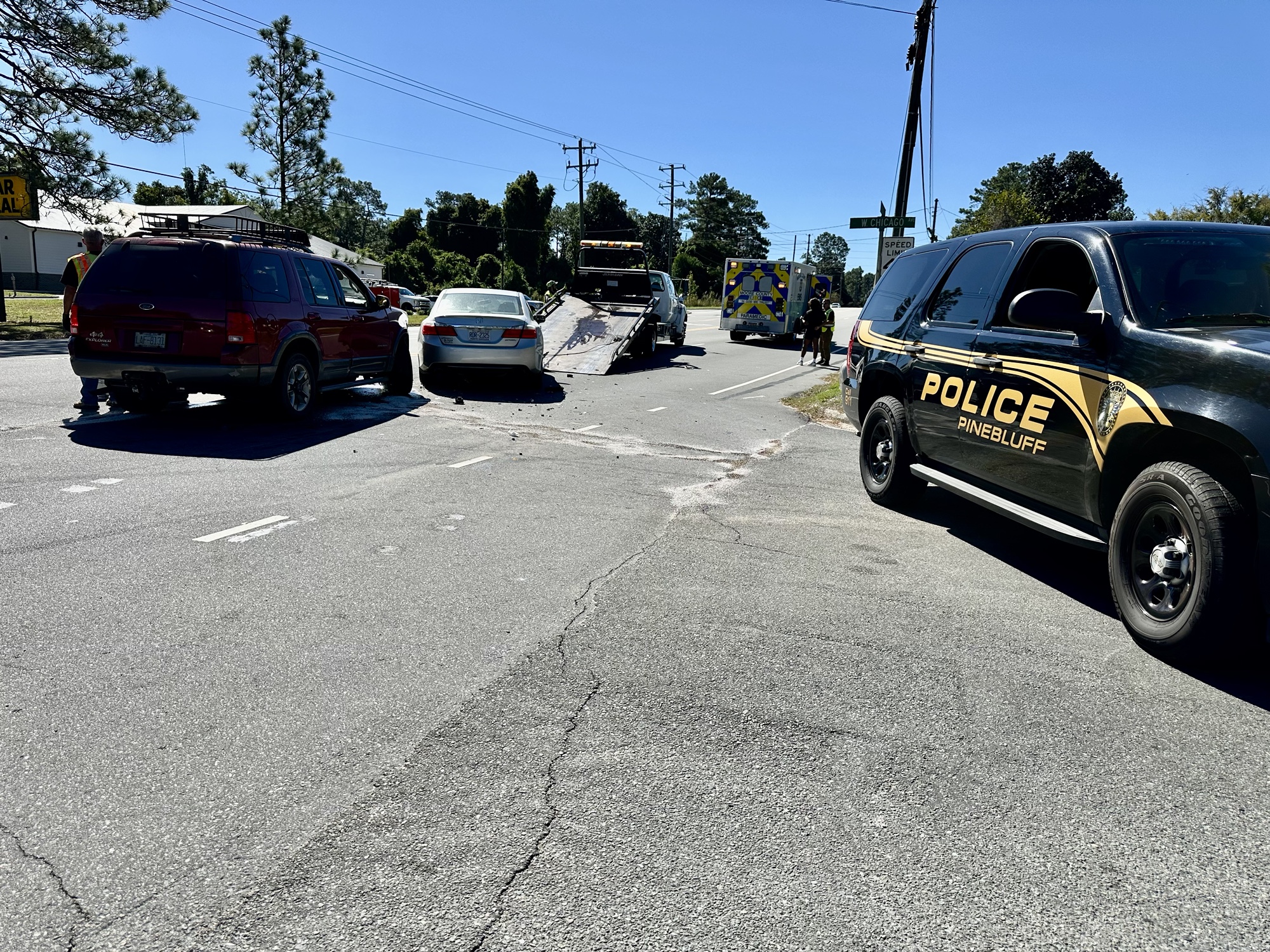 Pinebluff Police investigated the crash, and told Moore County News on scene, the driver of a Ford Explorer was trying to cross the highway on Chicago Avenue when is collided with a southbound Honda Accord.