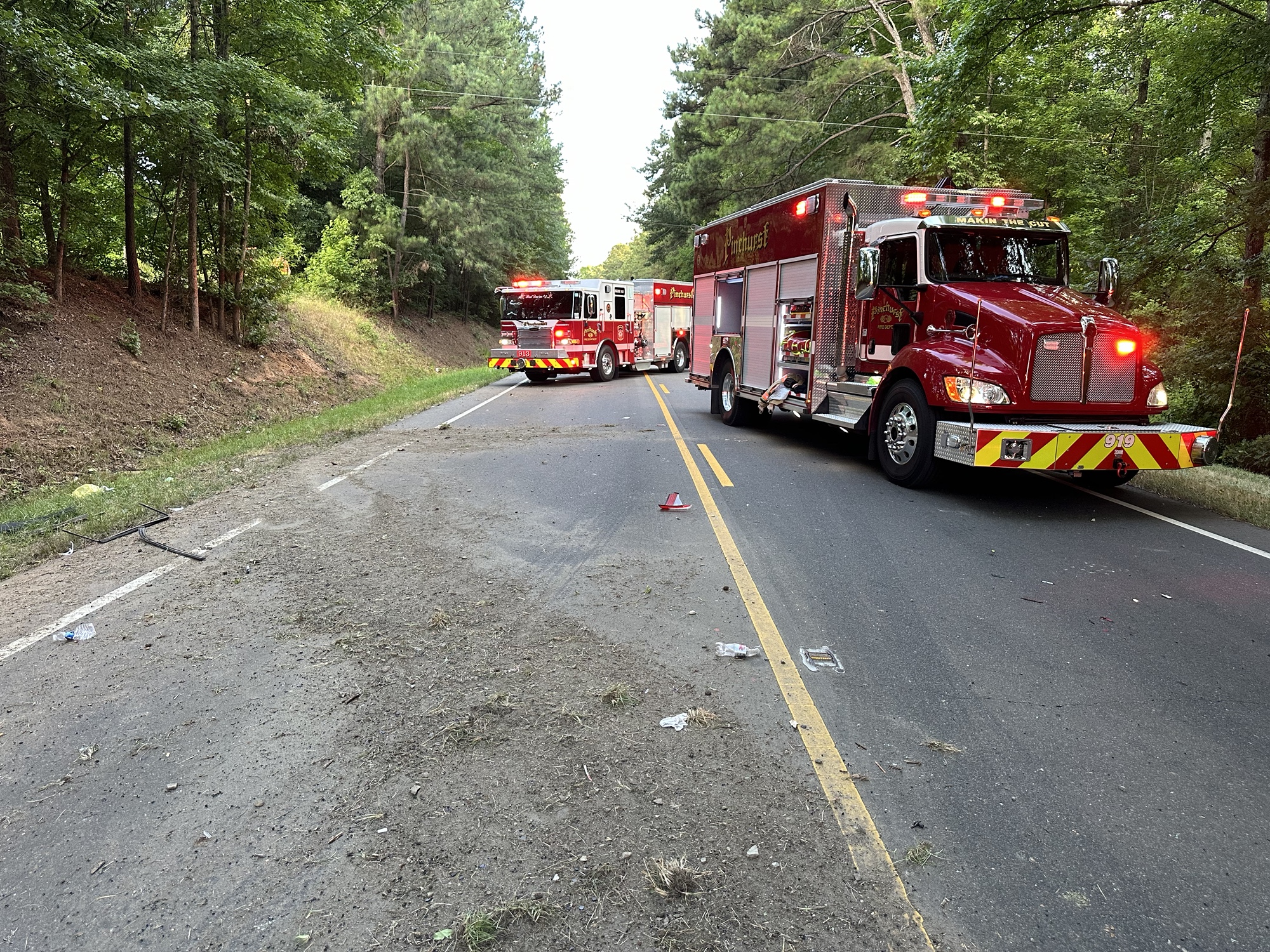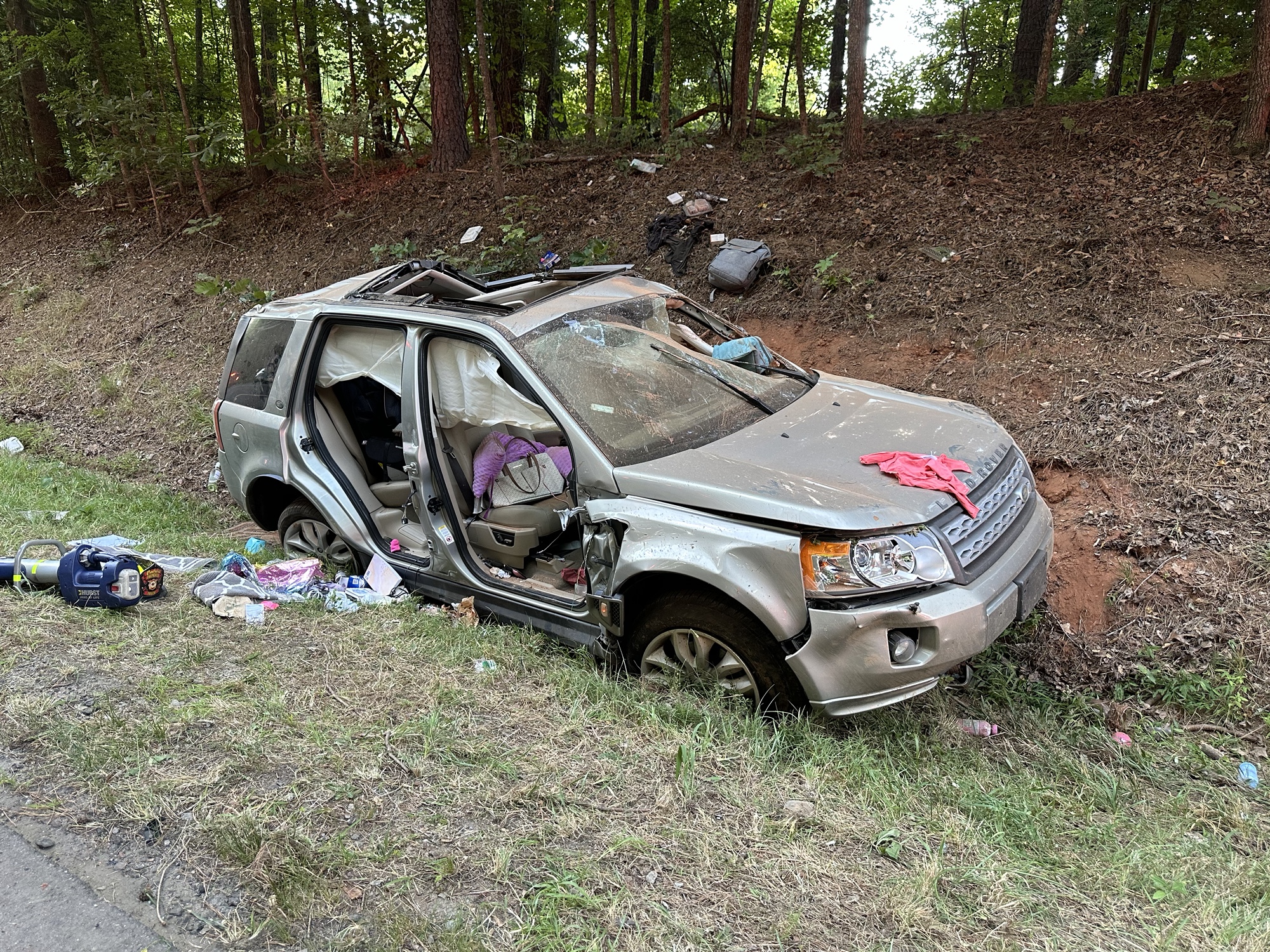 Fire crews from Eastwood, Carthage, and Pinehurst shut down Highway 15-501 between Doubs Chapel Road and N.C. Highway 73 while the crash was investigated and cleared. Debris was scattered along the highway, including a child’s sippy cup, toys, baby wipes. A child seat and baby stroller were also inside the vehicle. Firefighters and police officers searched the area of the crash scene for any child that may have been involved using thermal imaging scanners. No child or additional occupants were found.