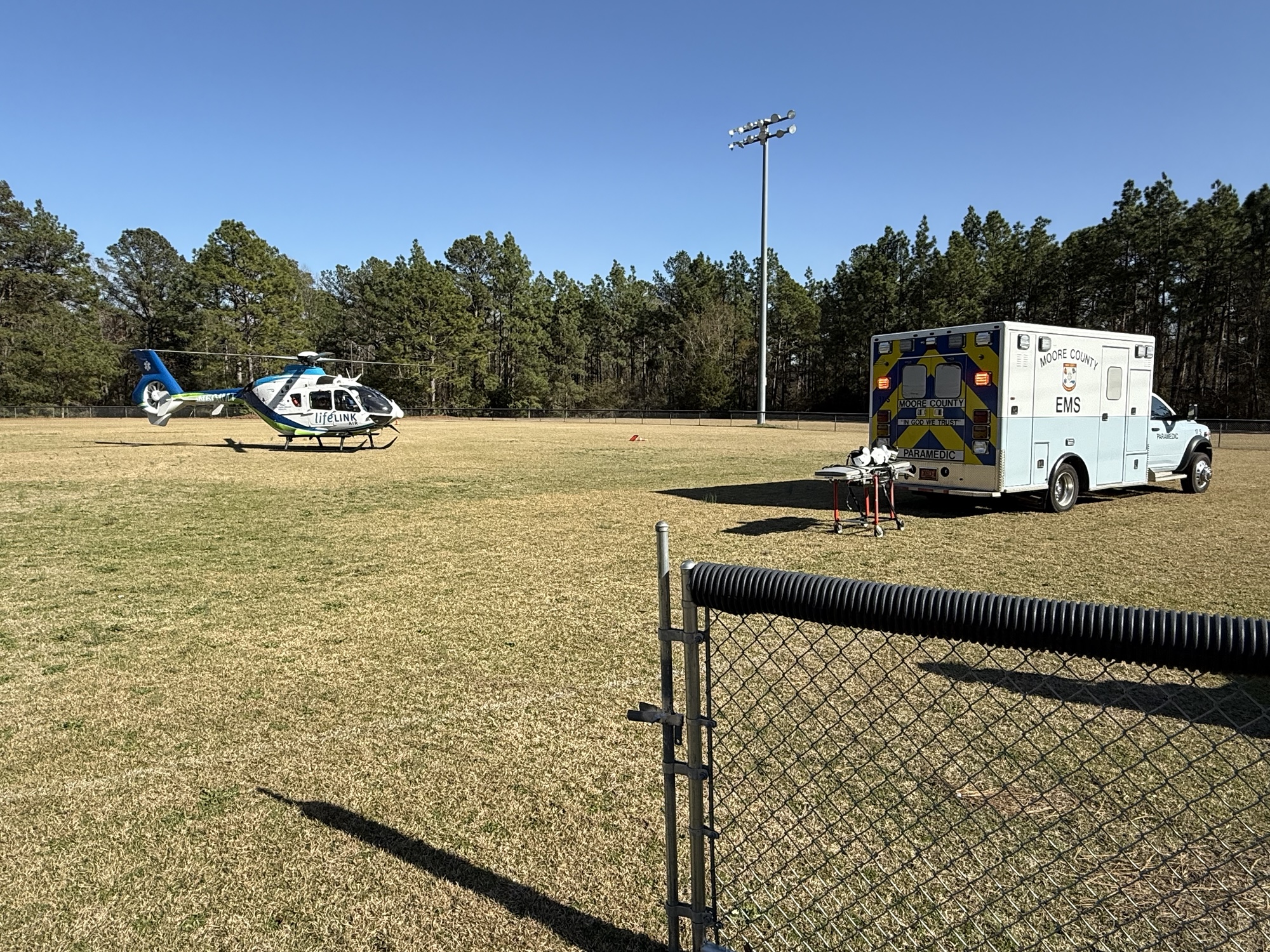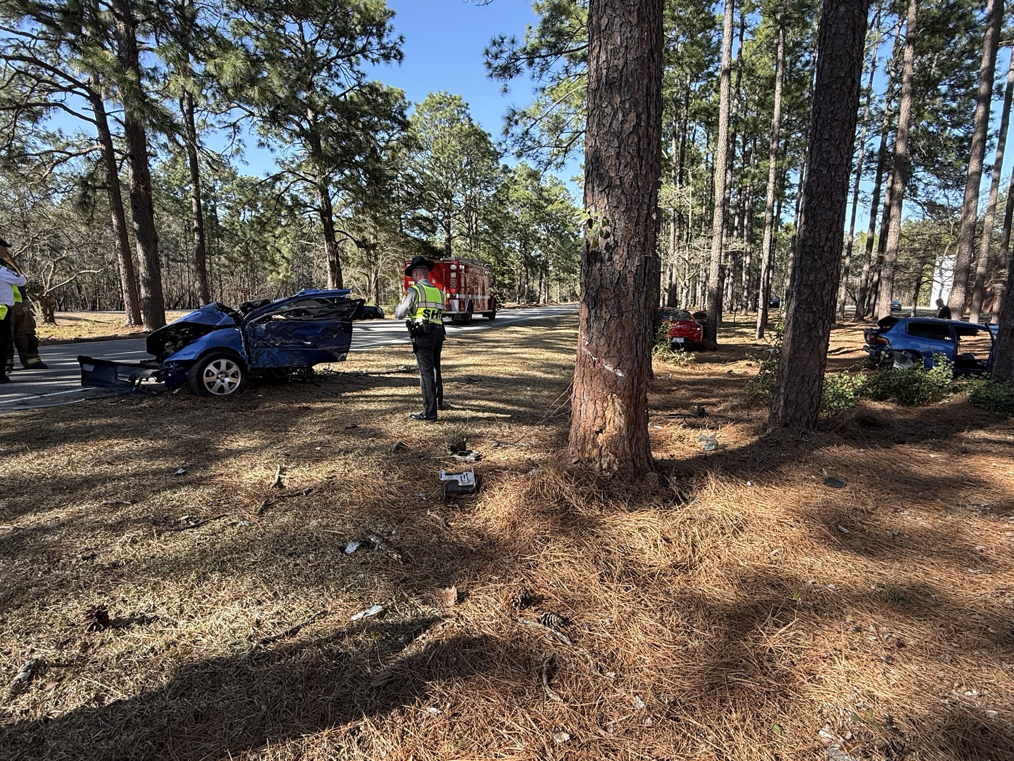 The driver of the Honda, a local 22-year-old man, was airlifted to a trauma center from a landing zone set up at the Pinebluff ball field. Troopers told Moore County News that he underwent surgeries for brain and spinal trauma at UNC Hospital in Chapel Hill. A passenger in the Chevy was transported to the hospital. Both of their conditions were considered life-threatening at the time they were transported. The driver of the Chevy was evaluated by medics at the scene but did not need to be hospitalized. Authorities confirmed that the Honda’s driver is the son of the Chevy’s driver.