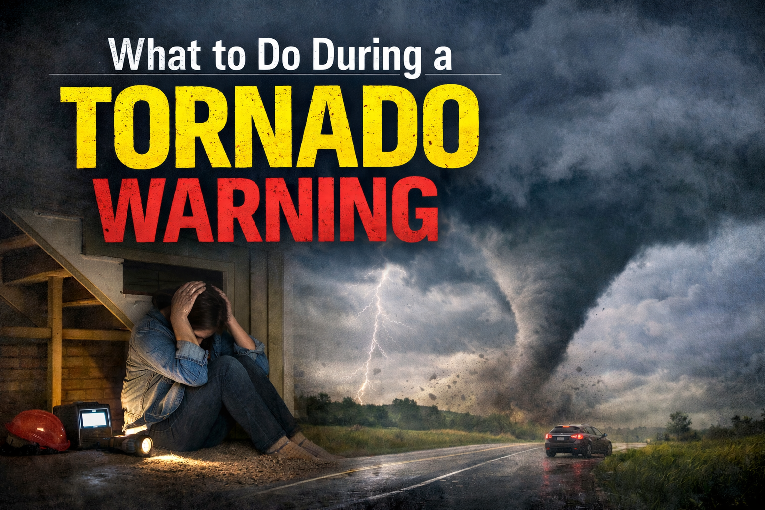 If you are driving and a tornado warning is issued, do not try to outrun the storm unless you can clearly see a safe route away from it. If debris is already flying or the tornado is close, pull over and seek shelter in a sturdy building. As a last resort, lie flat in a low area and cover your head.