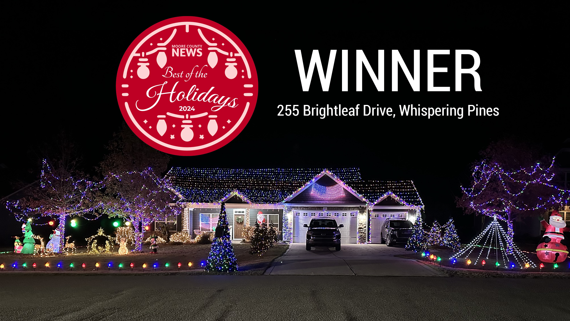 Moore County News would like to congratulate the light display located at 255 Brightleaf Drive, Whispering Pines as the winner of the 1st Best of the Holidays contest!